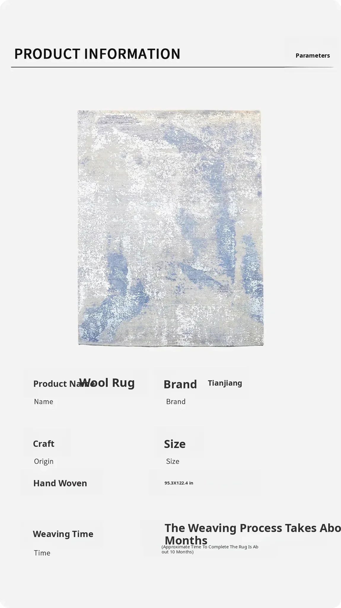 Heavenly Crafts Imported Handcrafted Wool Carpet - Modern Minimalist Luxury Rug for Villa Living Room, 242x311cm
