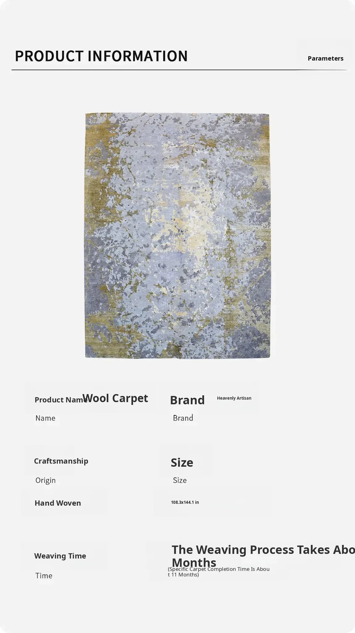 Imported Handmade Wool Area Rug for Living Room - Modern Minimalist Luxury Carpet, Perfect for Sofa and Coffee Table, Size: 275x365cm