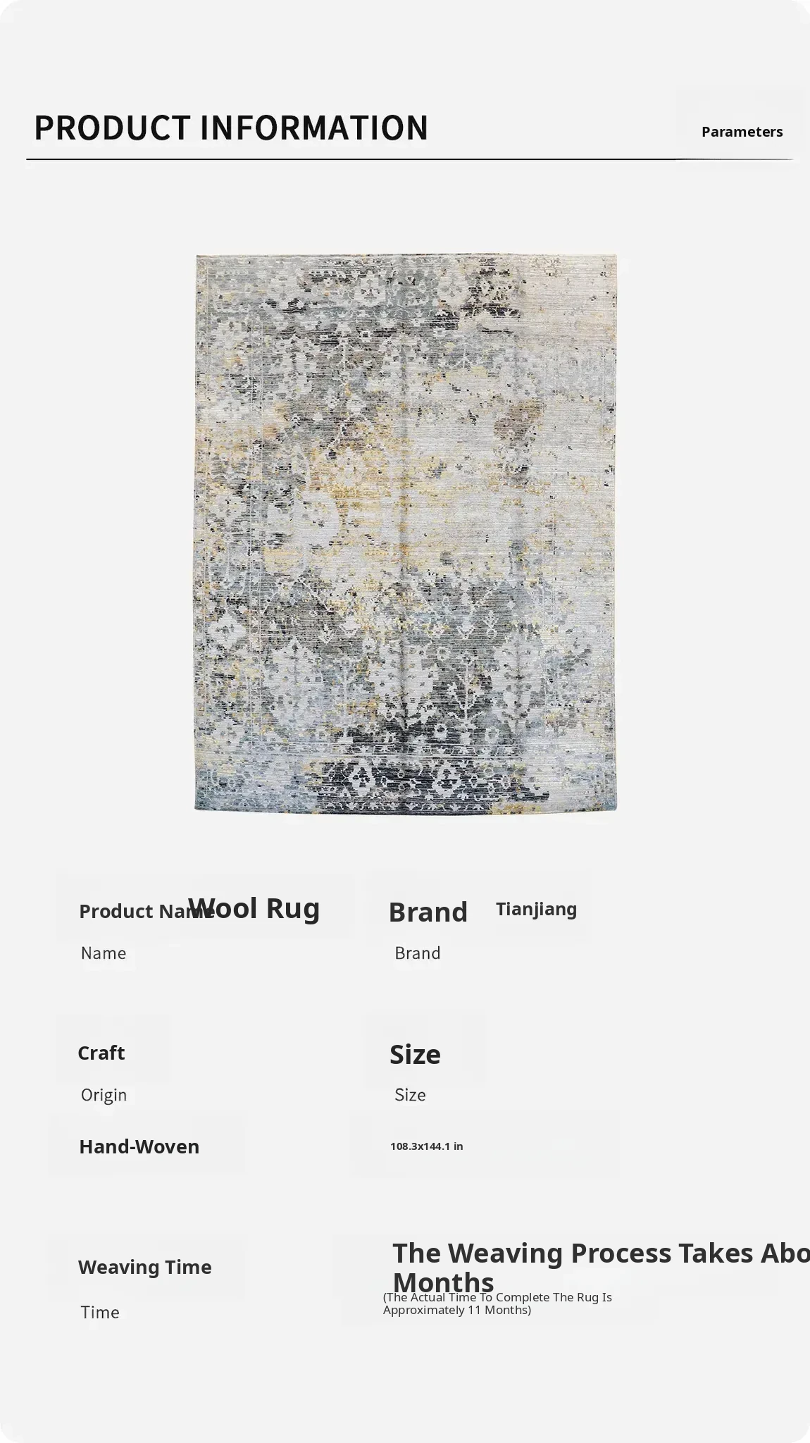 Imported Handmade Wool Rug - Modern Luxury Carpet for Large Apartments, Perfect for Bedroom or Bedside, Size: 275x365cm
