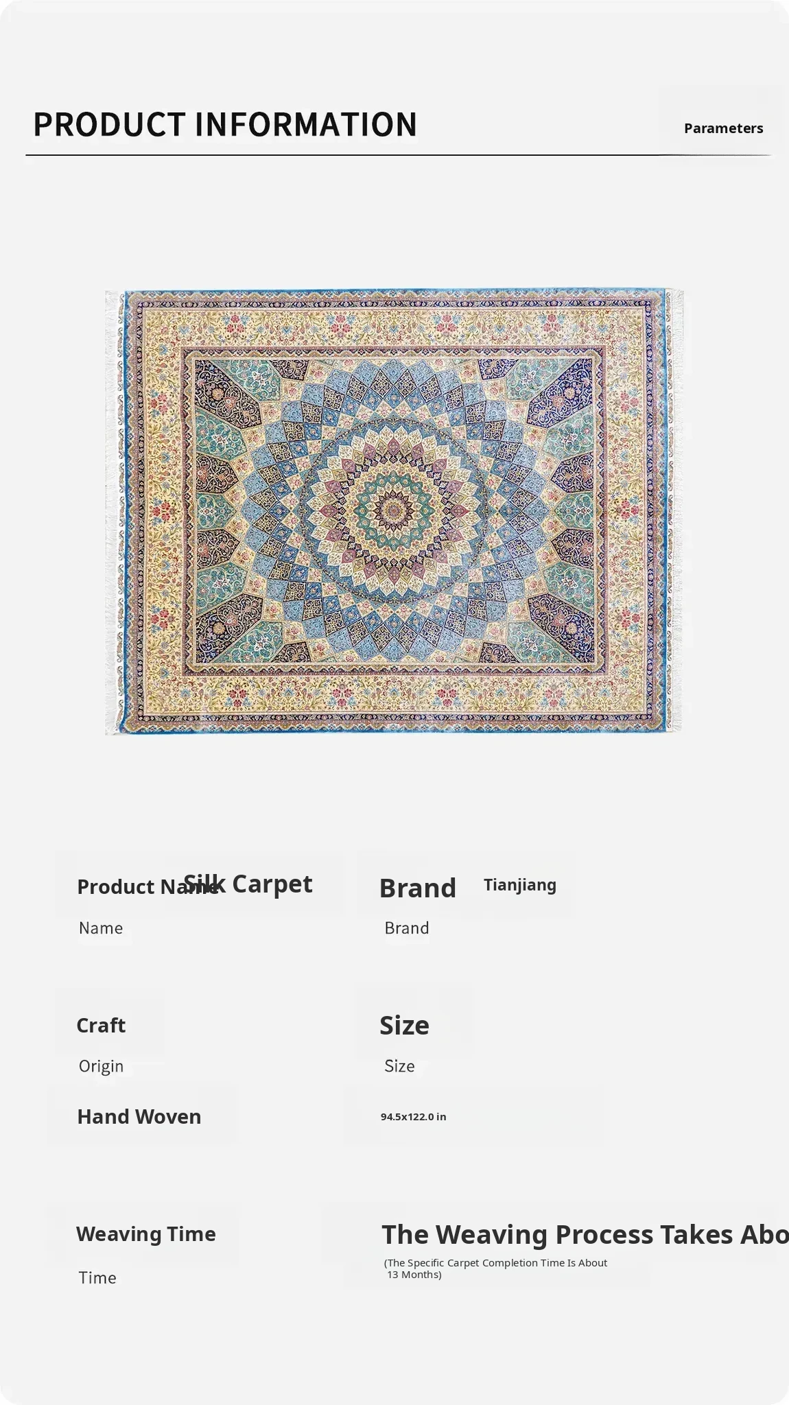 Luxurious Handmade Silk Carpet - Exquisite Persian-Style Area Rug for Bedroom, 240x310cm, Crafted with Care and Elegance