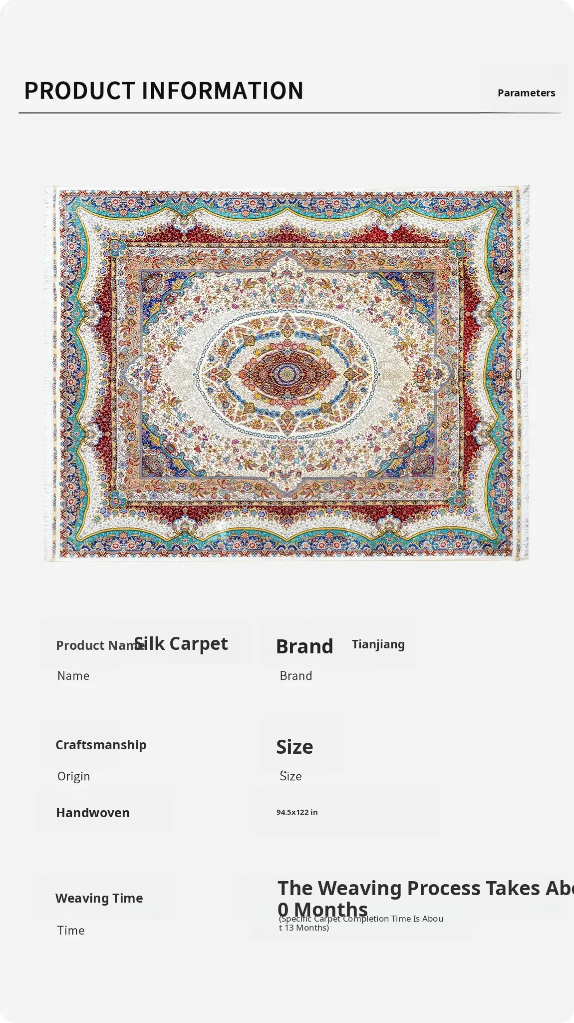 Luxury Handcrafted Silk Carpet - Persian Design for Villa Living Room or Bedroom, 240x310cm, Perfect for Elegance and Comfort
