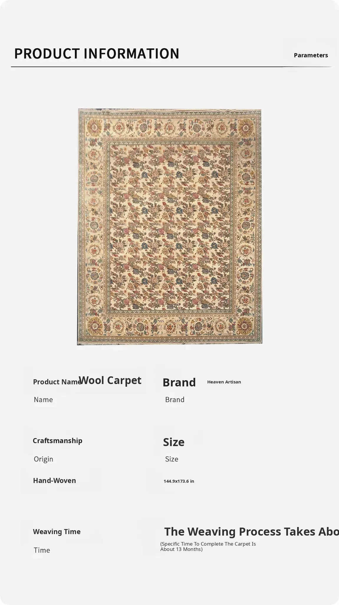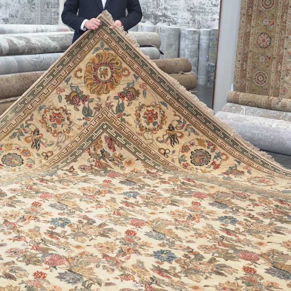 Luxury Handcrafted Wool Carpet by Artisan - Imported High-End Wool Area Rug for Villa Living Room and Bedroom, Size: 368x442cm