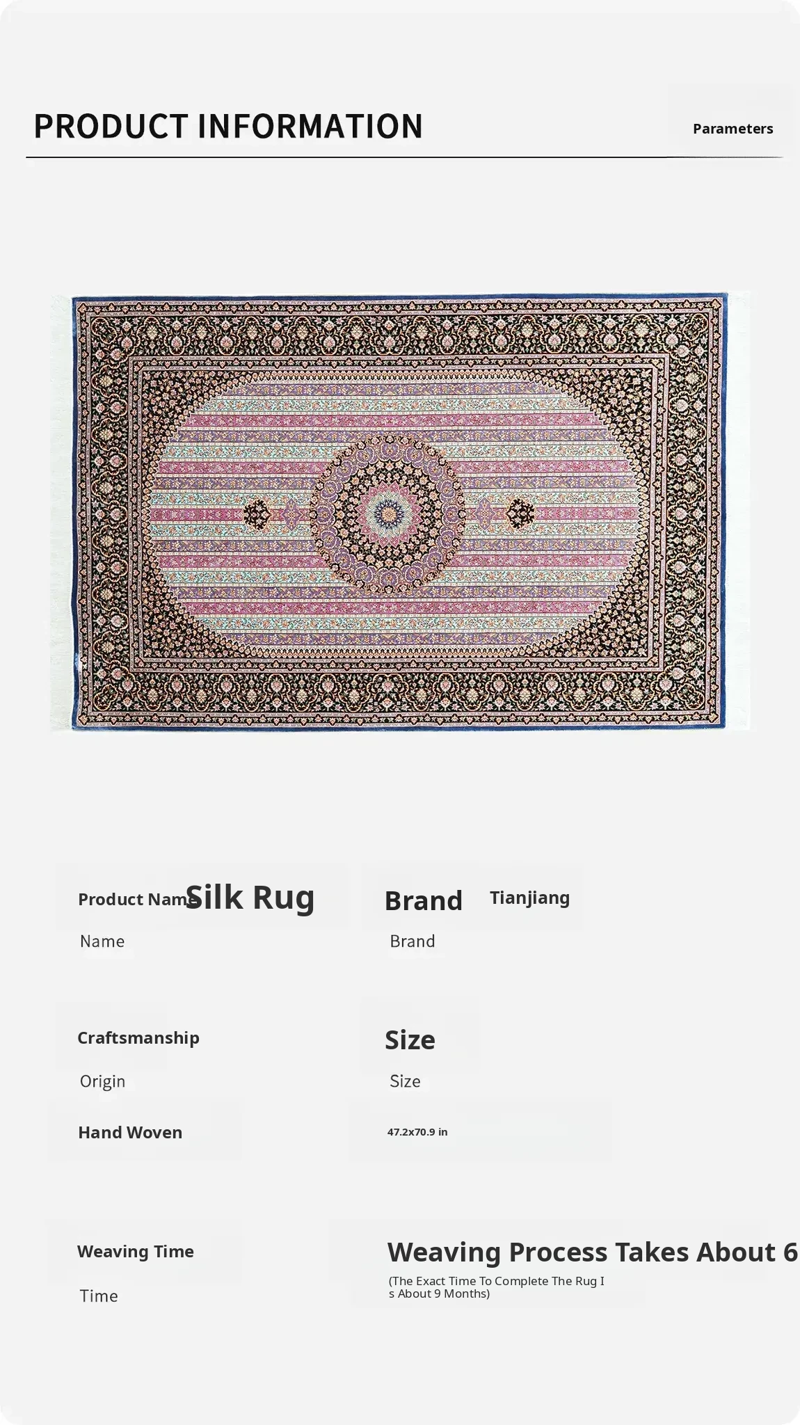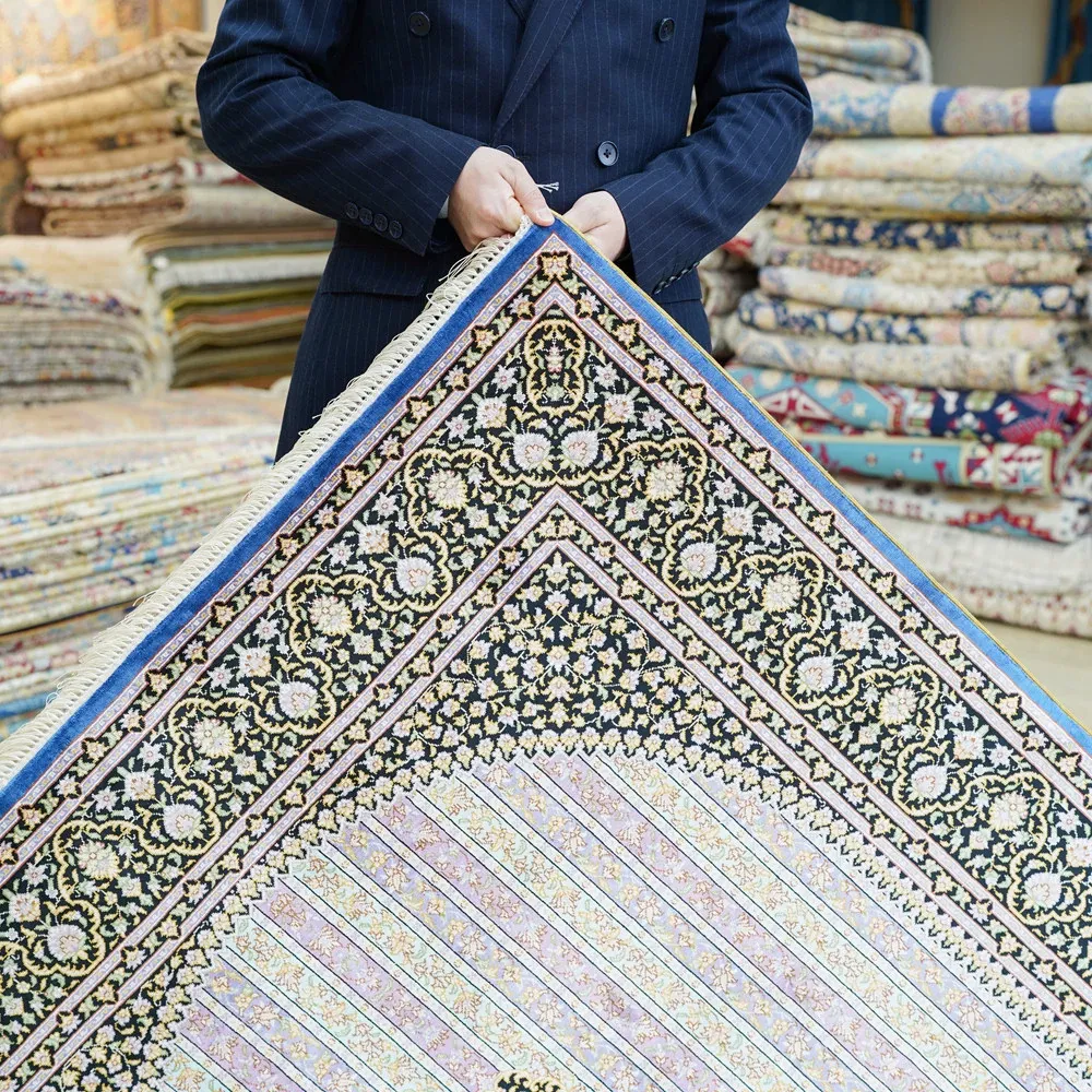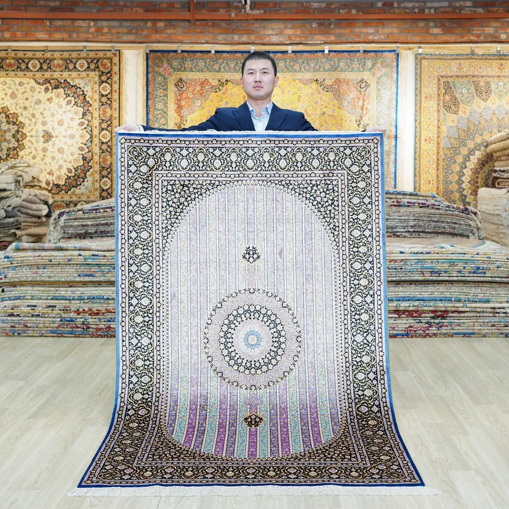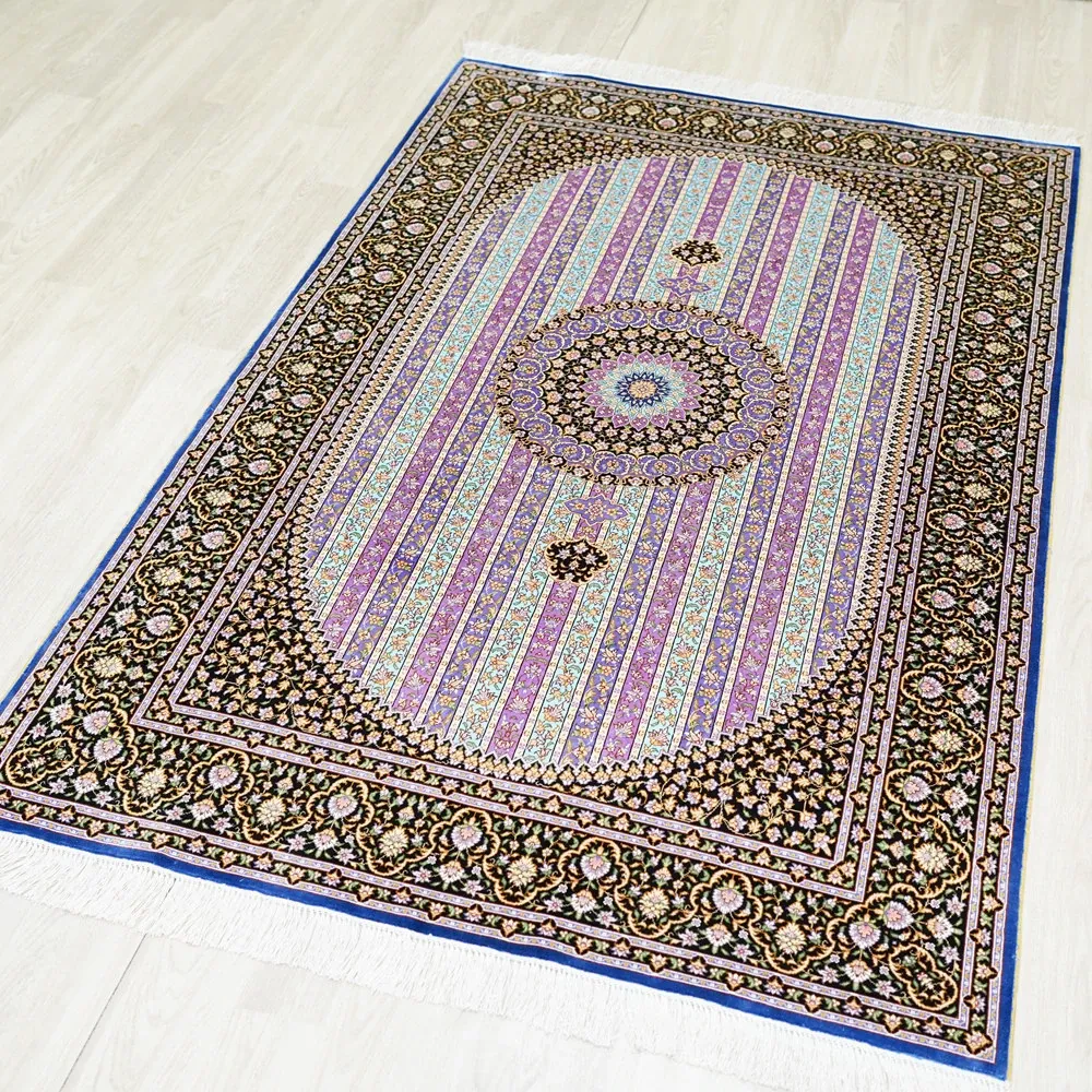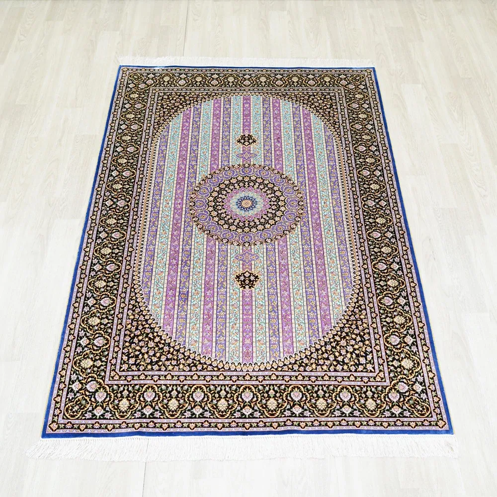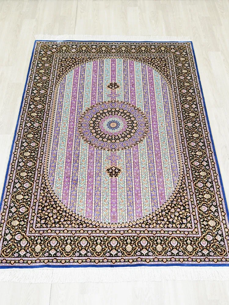 Luxury Handmade Silk Carpet - Exquisite Floor Mat for Villa Bedrooms, Glue-Free Design, Perfect for Bedside Use, Size: 120x180cm, Elevate Your Space with Timeless Elegance!