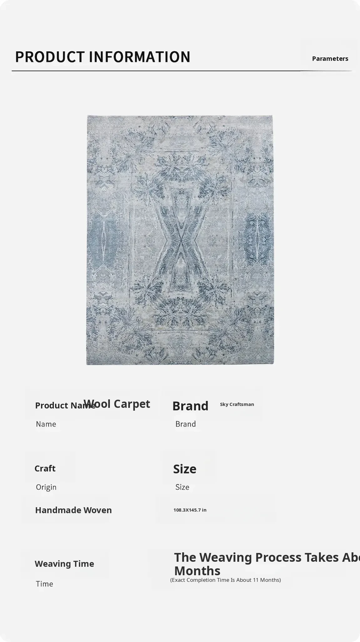 Luxury Imported Handcrafted Wool Rug - Modern Italian Design for Living Room and Bedroom, Size 275x370cm