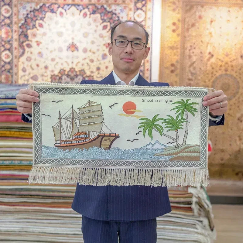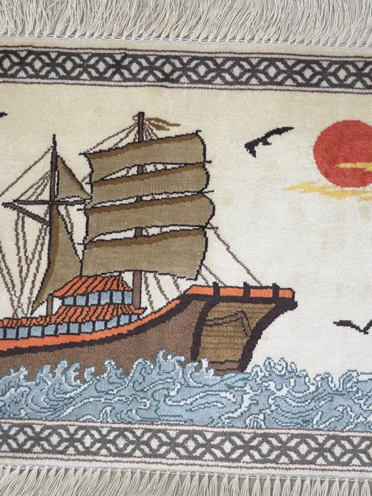 Persian Carpet by Tianjiang - "Smooth Sailing" Scenic Hand-Knotted Silk Tapestry, Exquisite Artistry for Elegant Home Décor