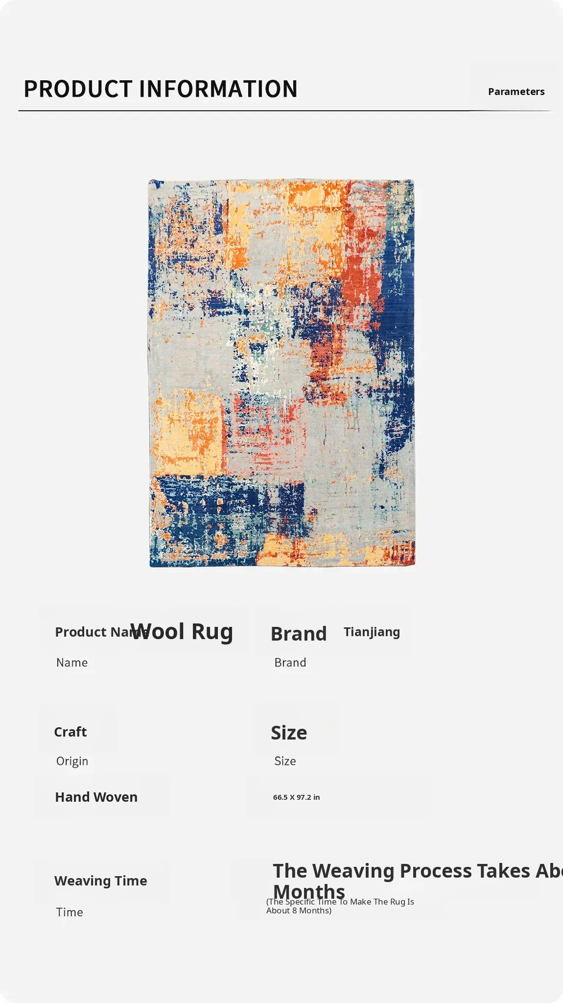 Premium Handcrafted Wool Carpet for Luxury Villas - Stylish and Durable Area Rug for Bedrooms and Studies, 169x246 cm, Perfect for Home Use