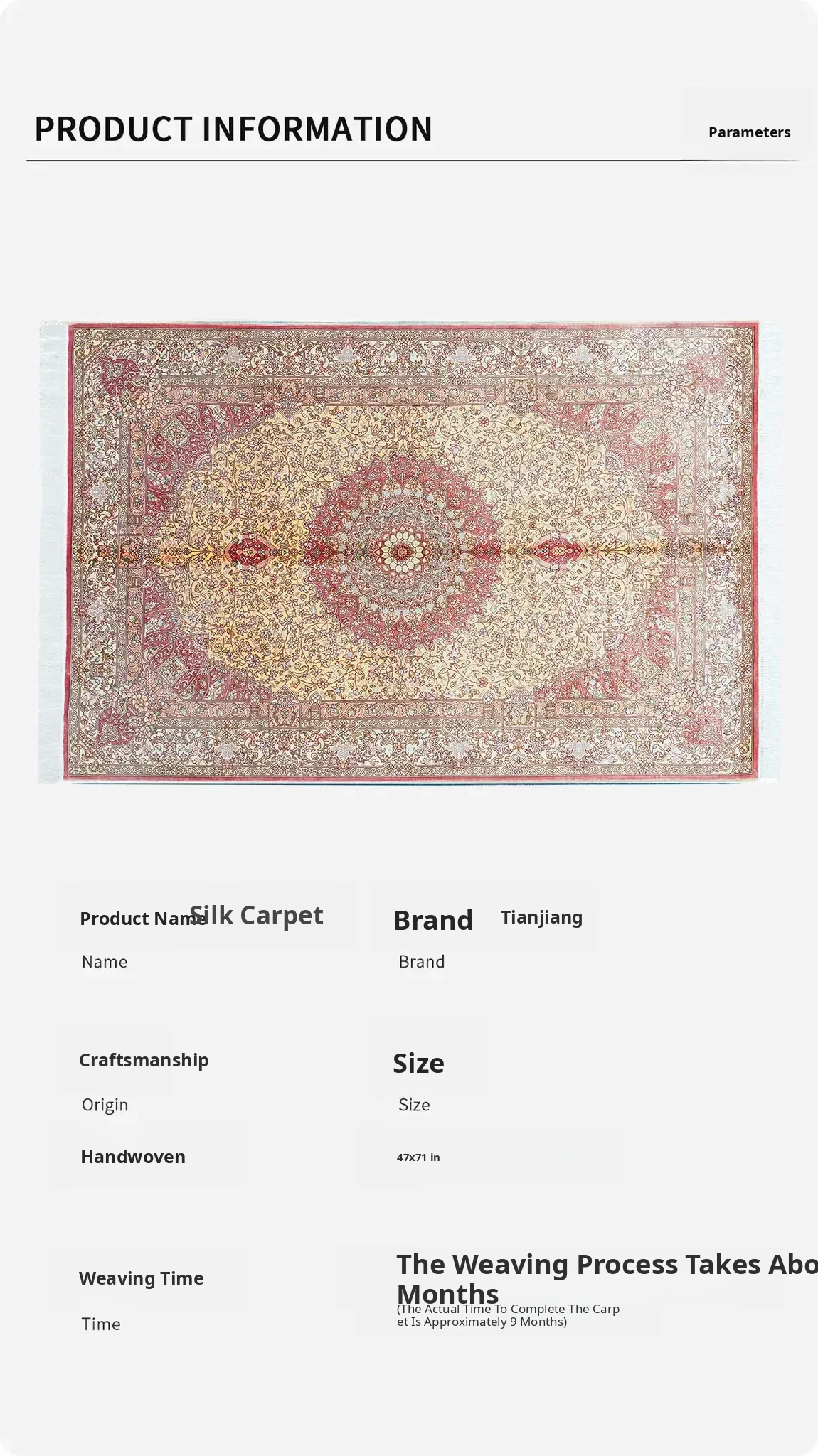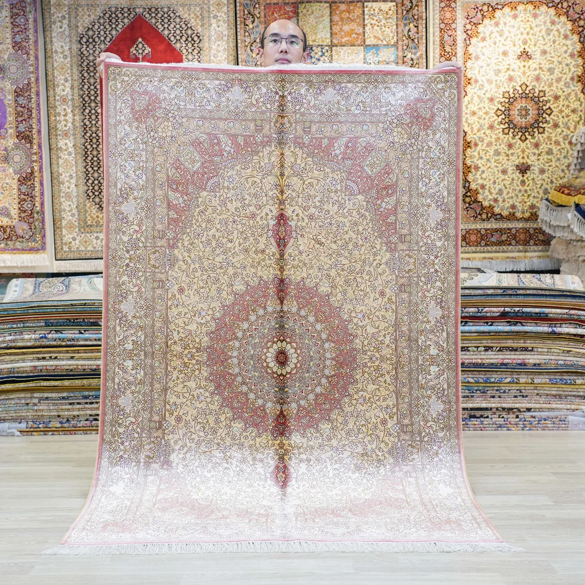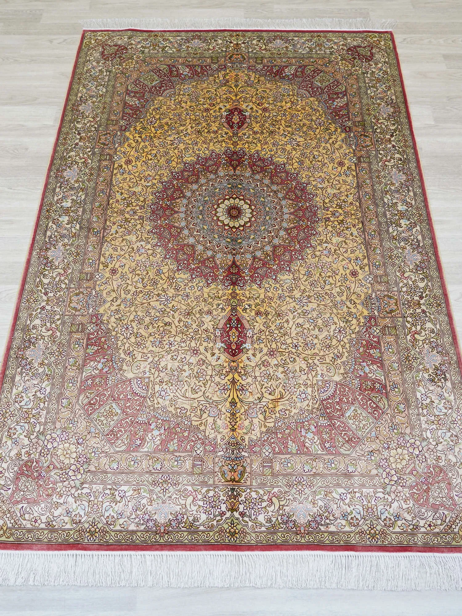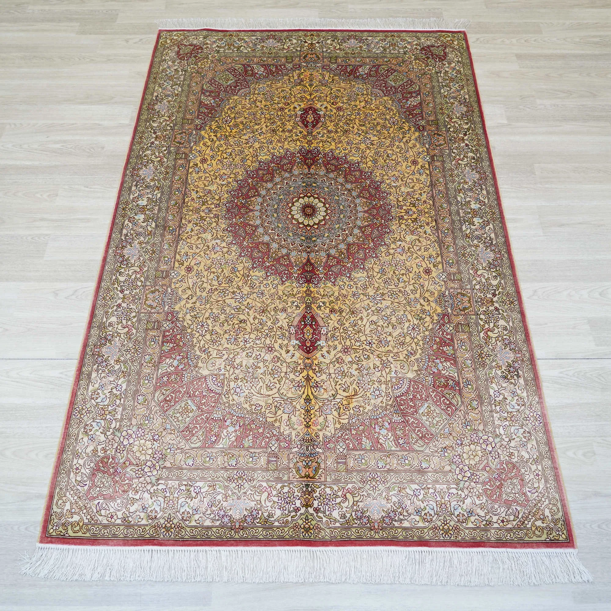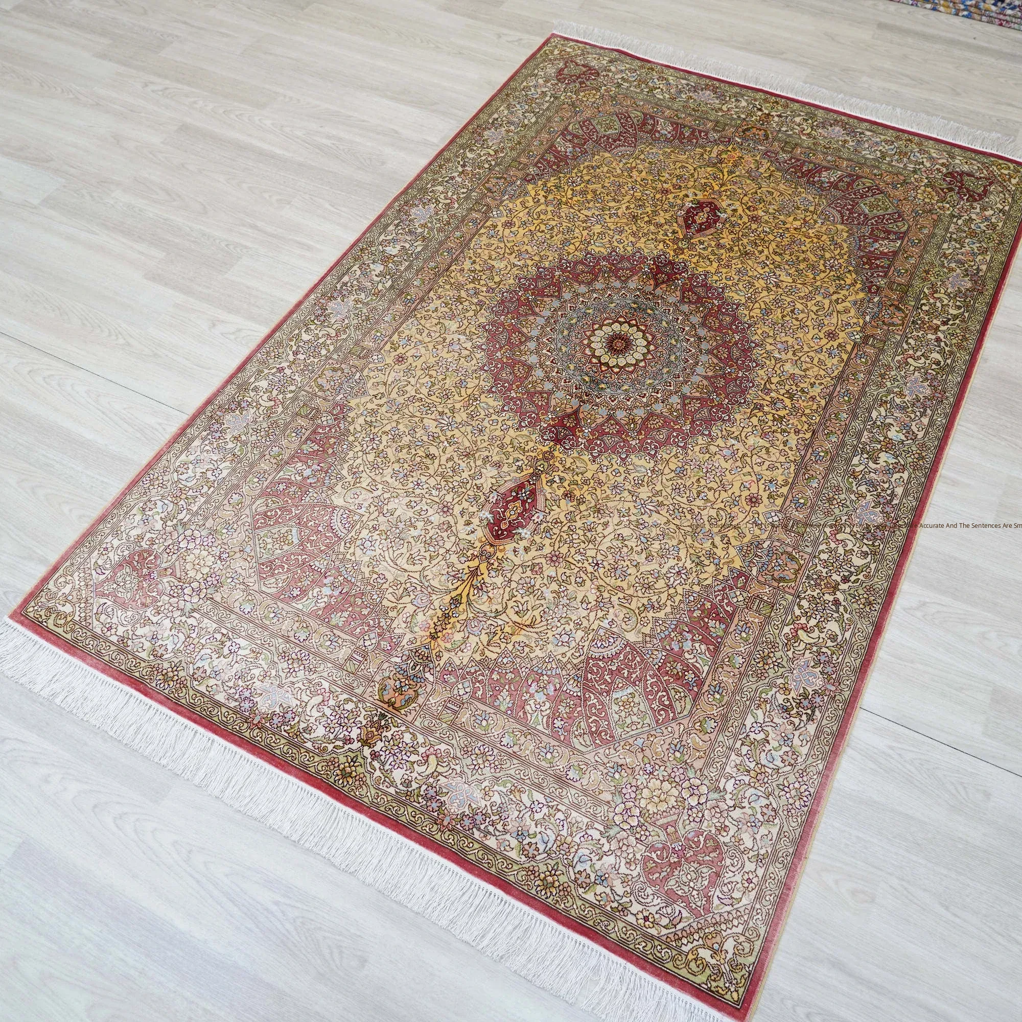 Premium Handmade Silk Carpet by Artisan - Exquisite High-End Area Rug for Home, Perfect for Bedroom, Size: 120x180cm, Ideal for Export to Europe and America