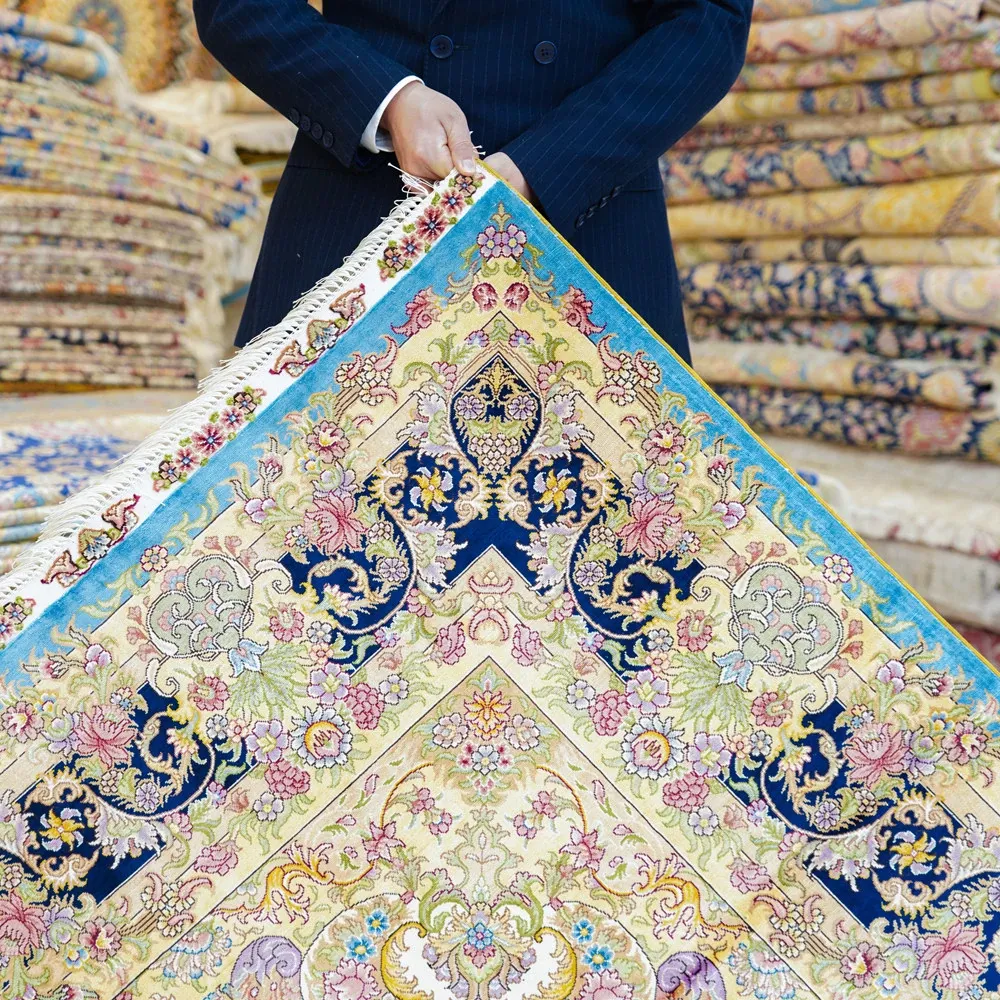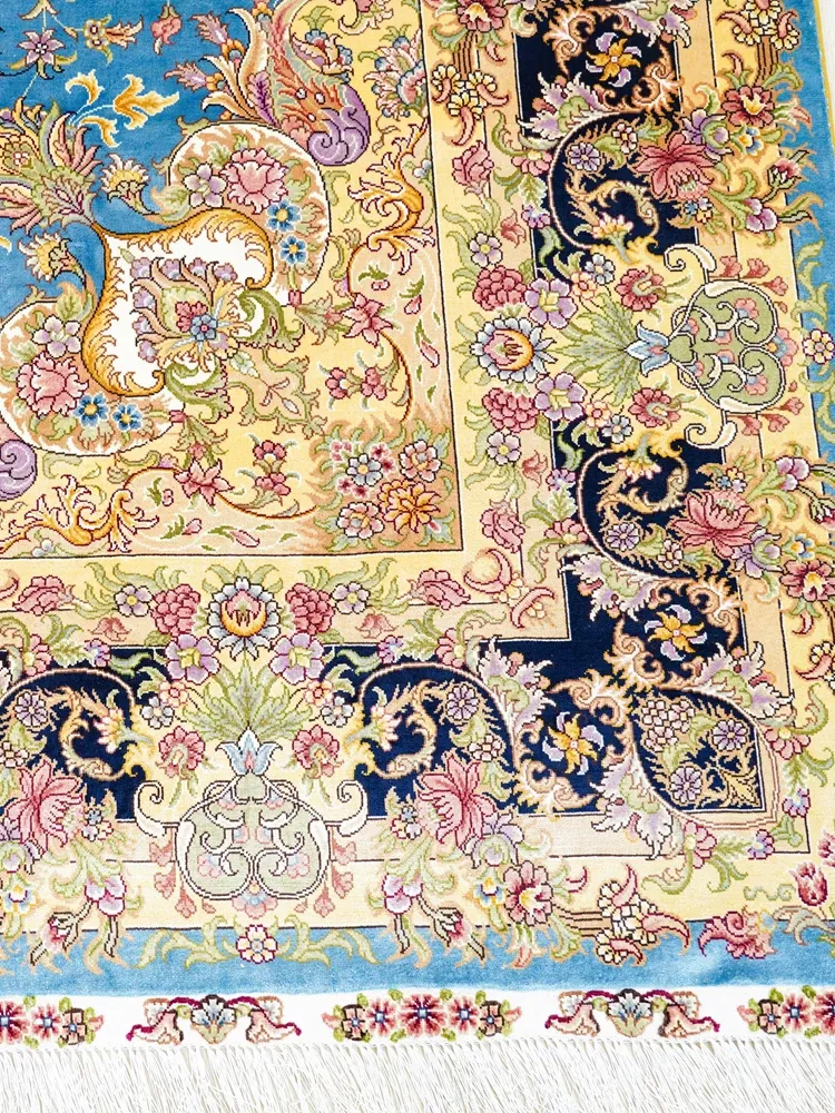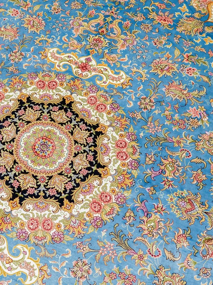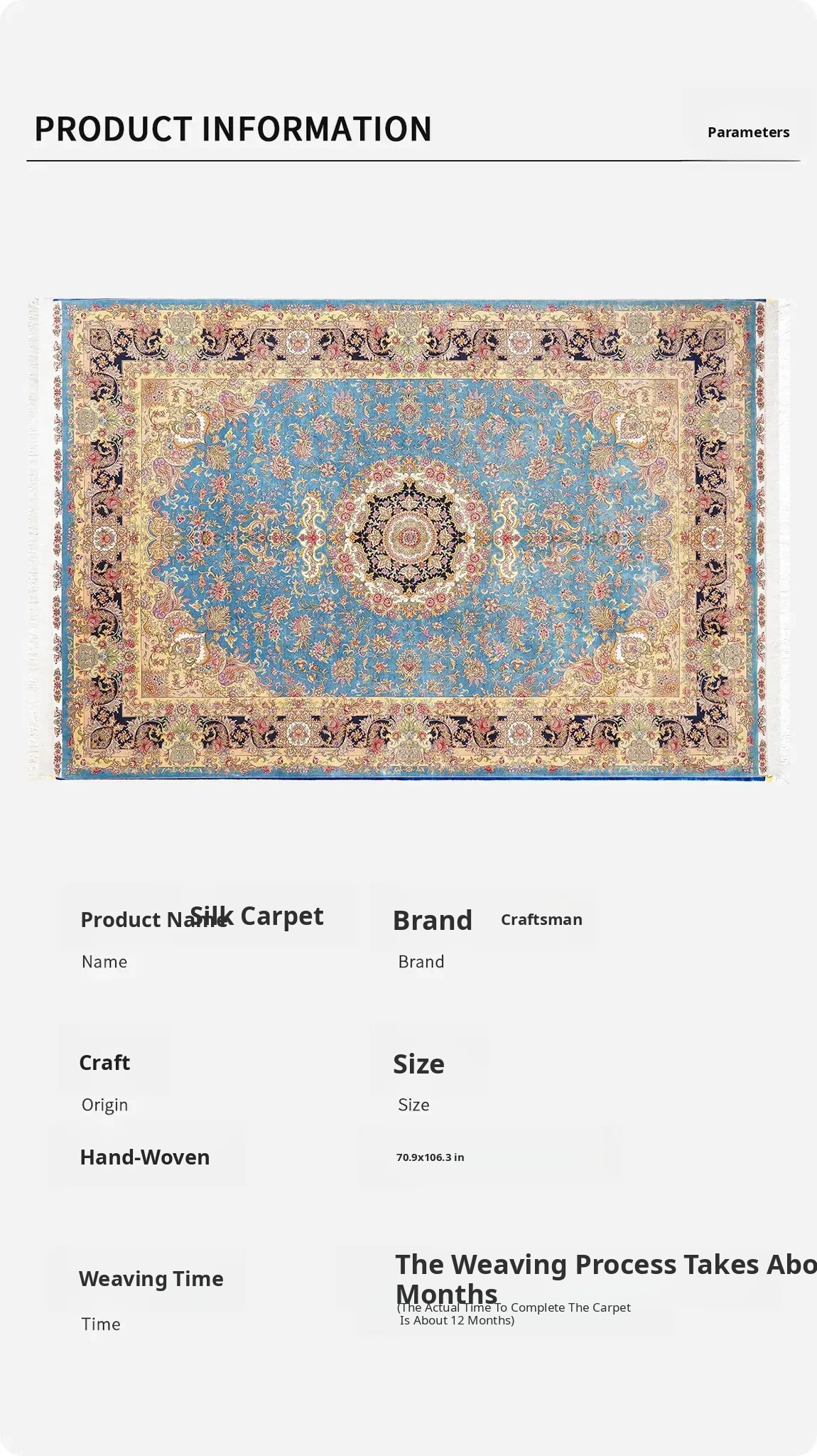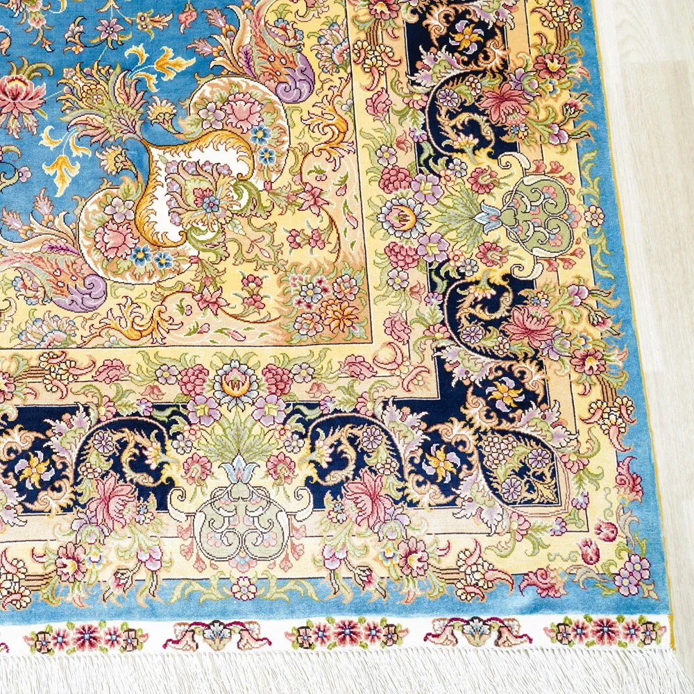 Tianjiang Handmade Genuine Silk Blue Classic Persian Carpet - Luxurious Villa Area Rug, American & European Style, 180x270cm