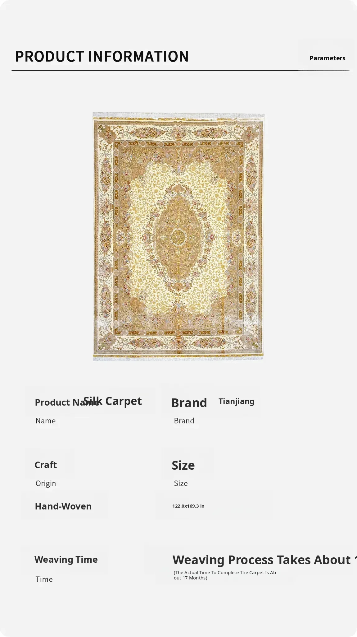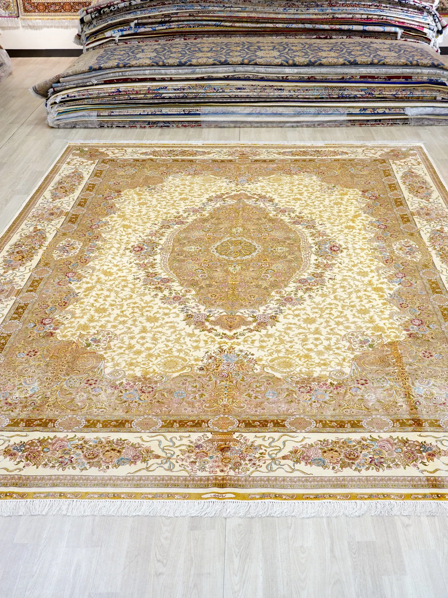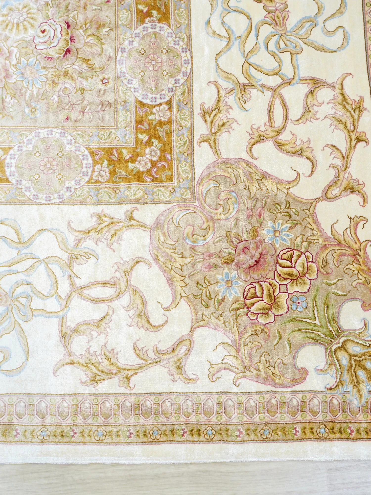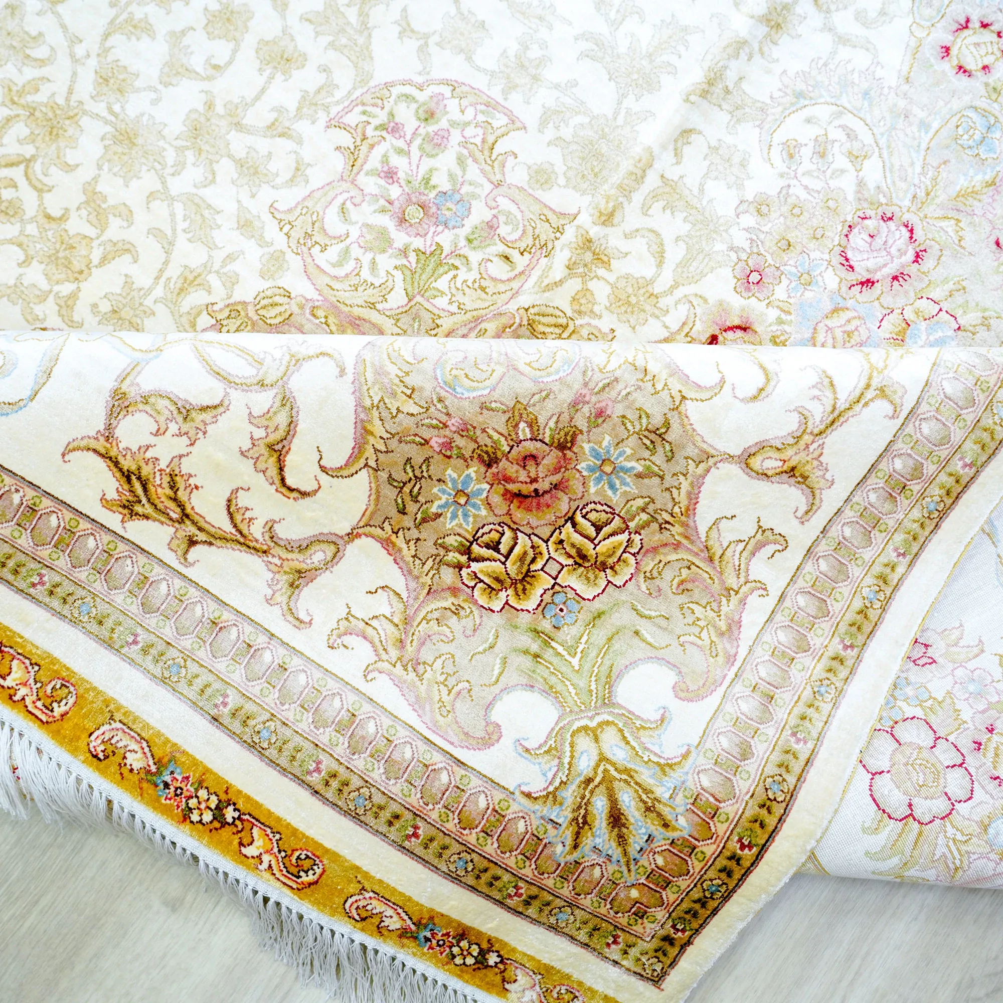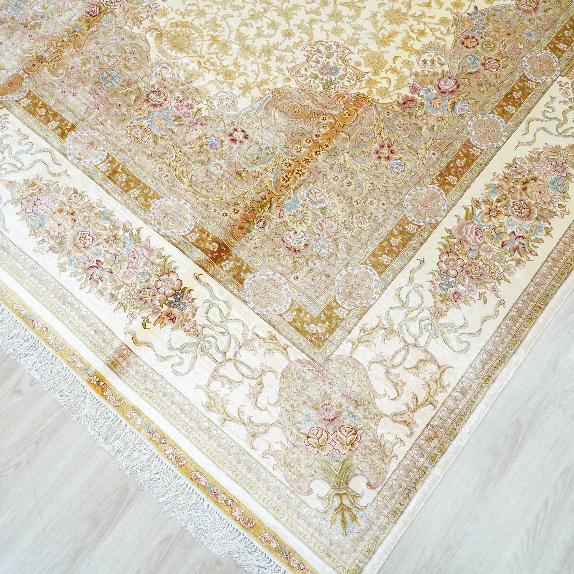 TianJiang Handmade Genuine Silk Carpet - Elegant Beige Area Rug for European and American Villas - Premium Quality 310x430 cm