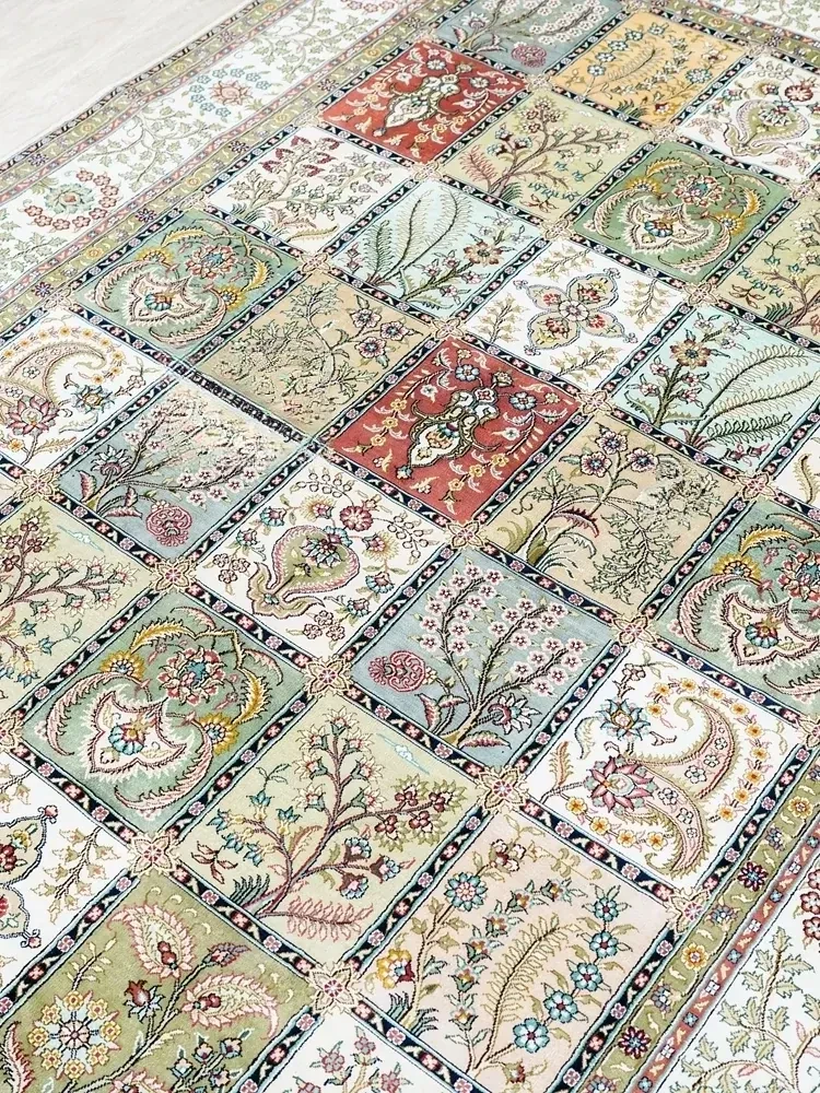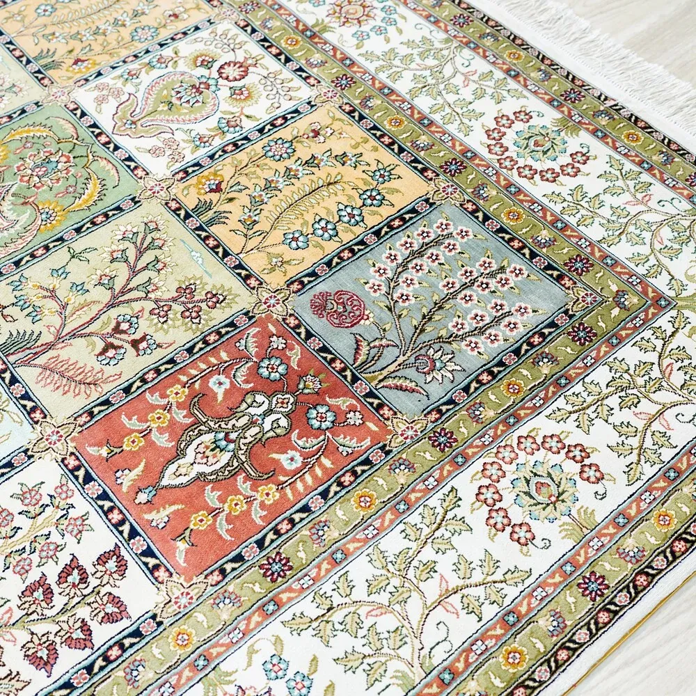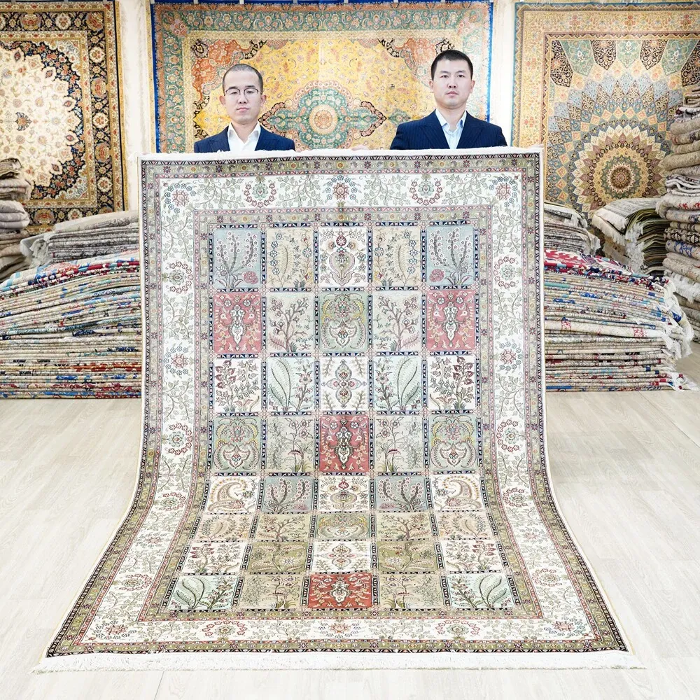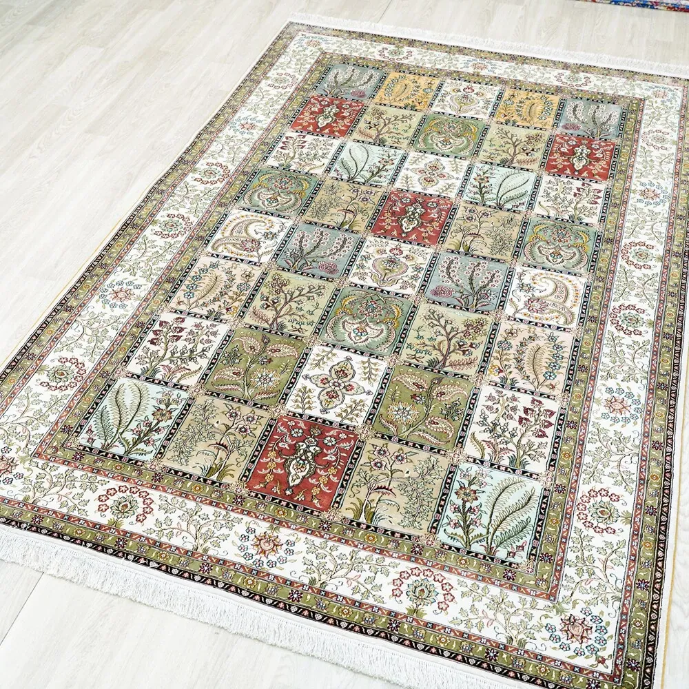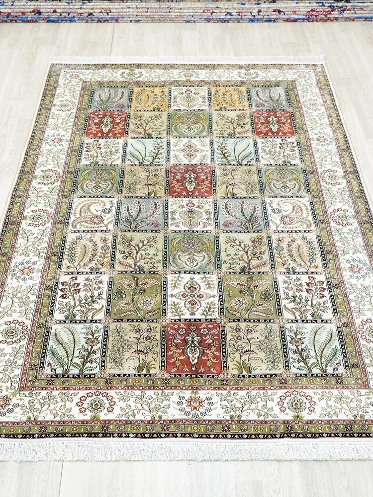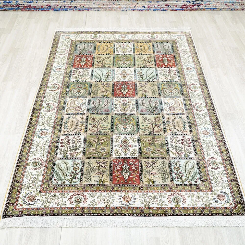Tianjiang Handmade Genuine Silk Carpet - Persian Garden Design, Perfect for European and American Living Rooms and Bedrooms, Size: 150x240cm - Luxurious Elegance for Your Home Decor