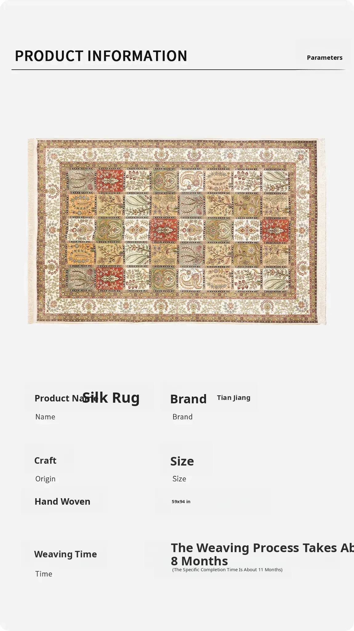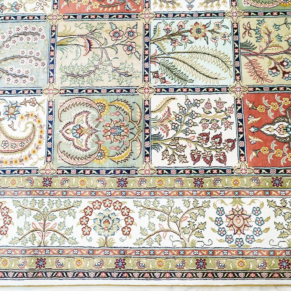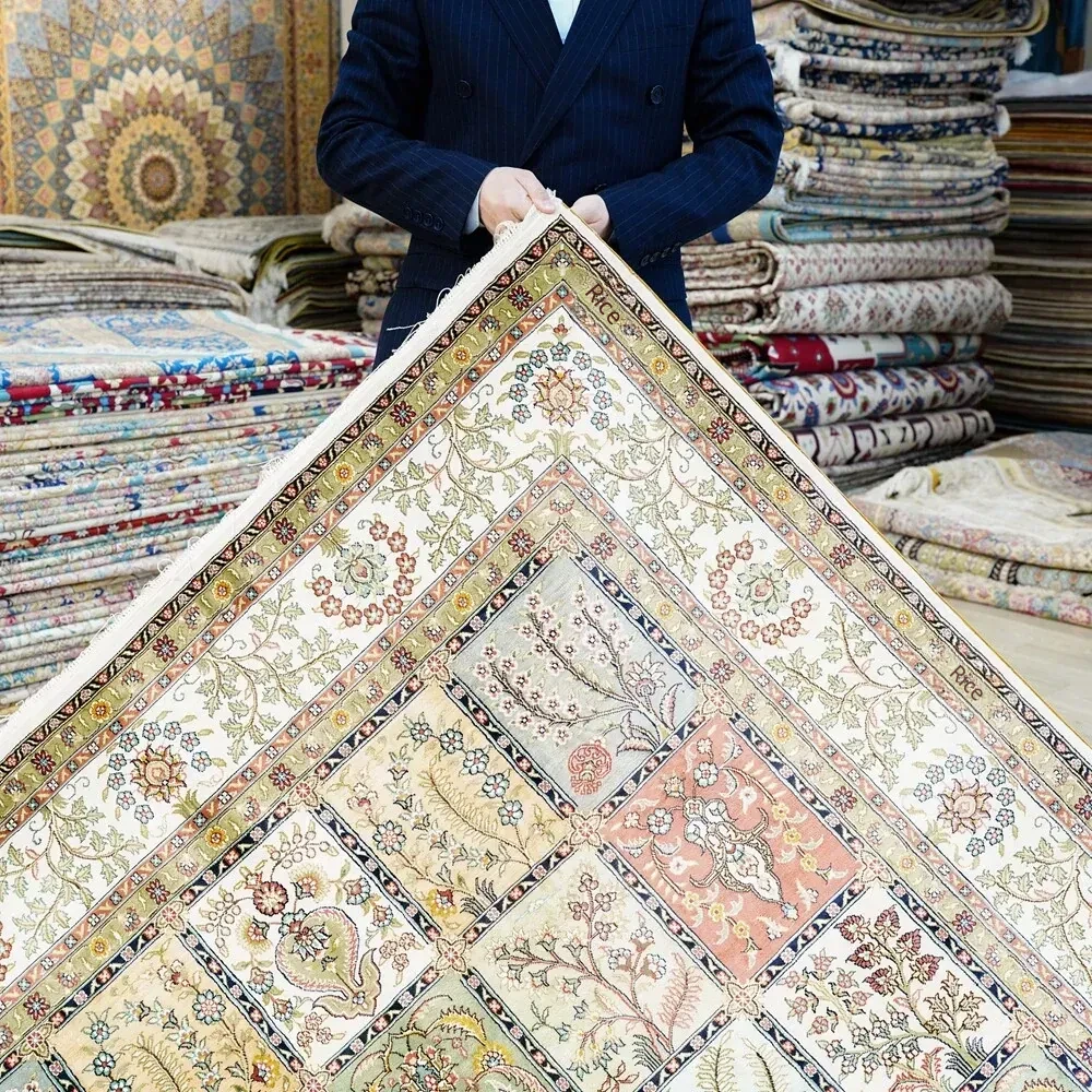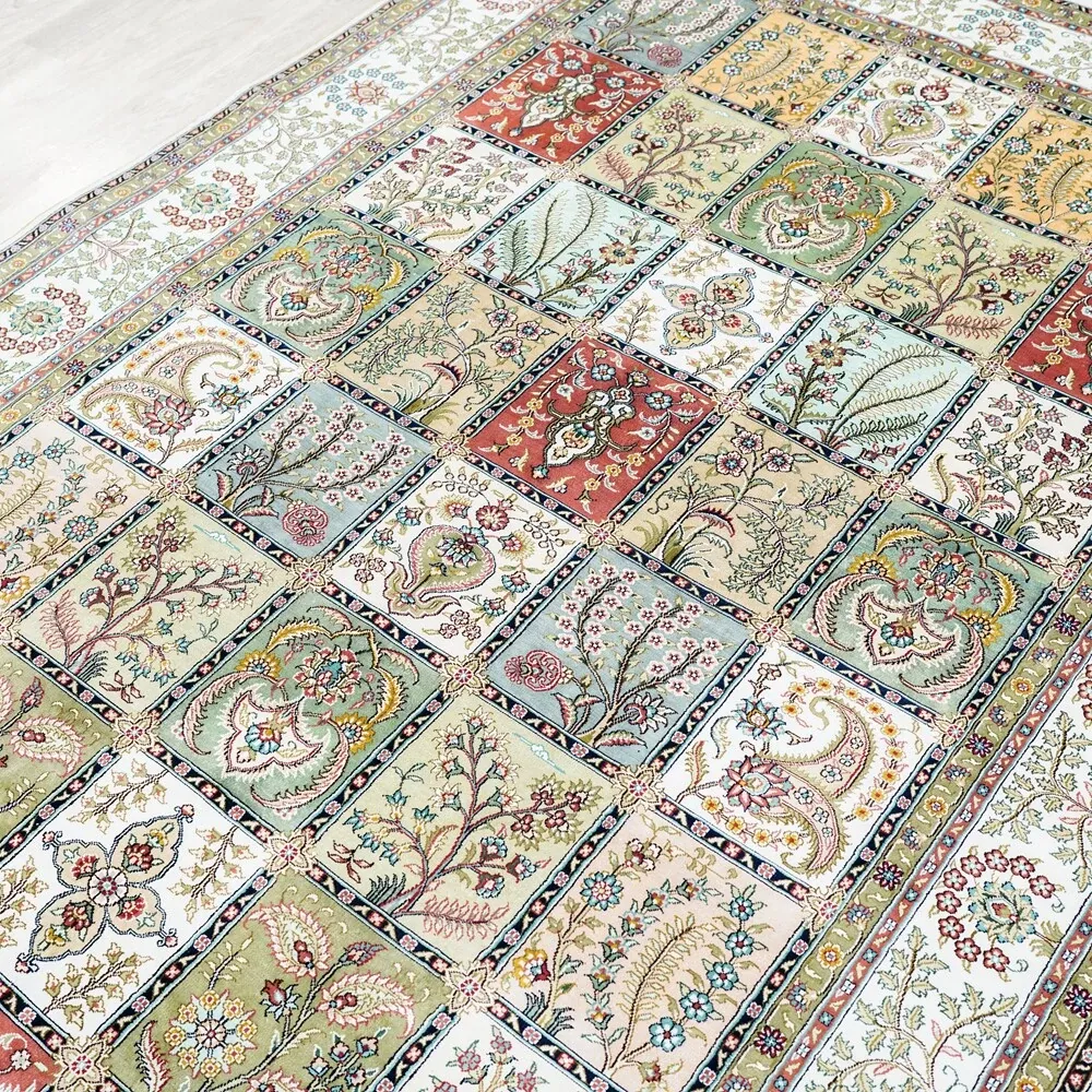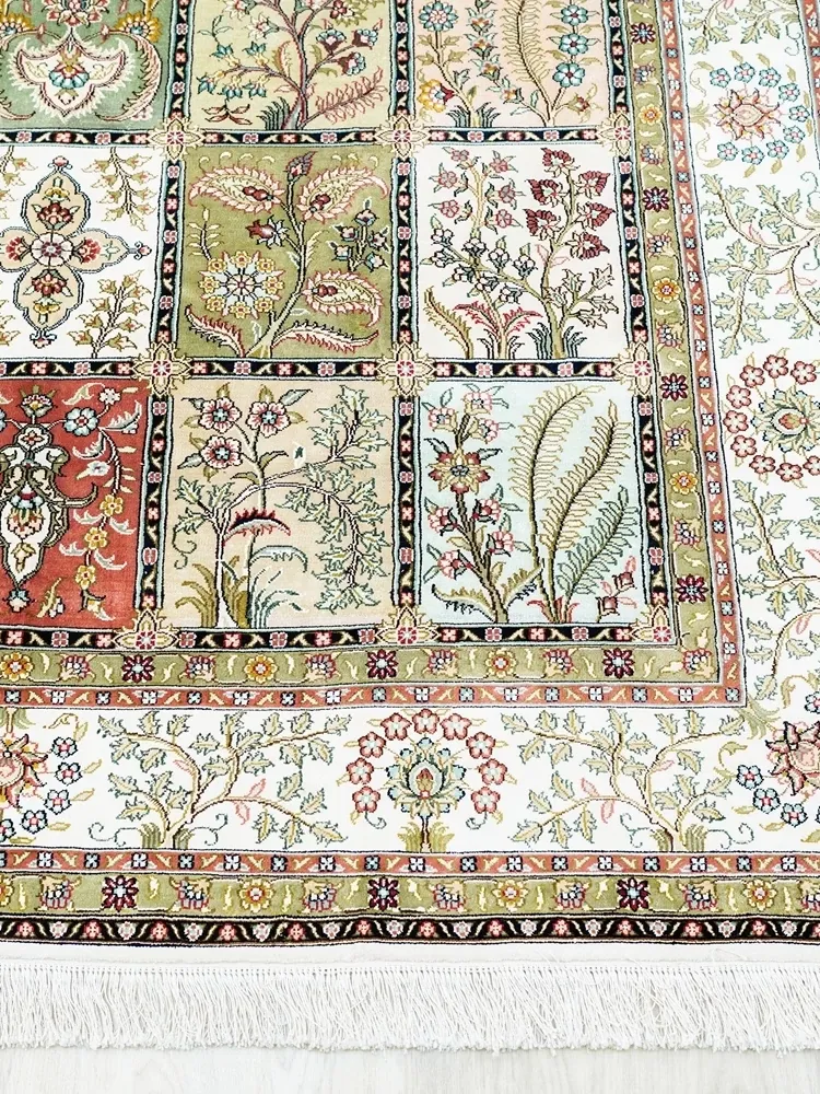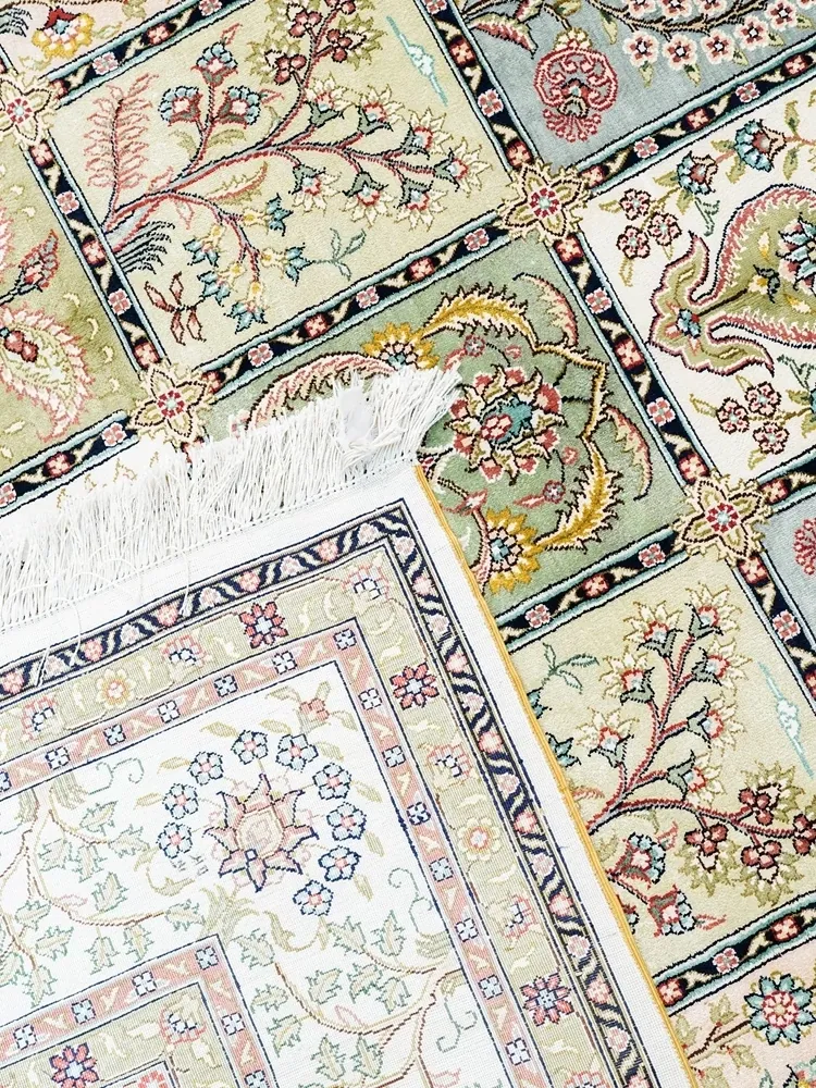 Tianjiang Handmade Genuine Silk Carpet - Persian Garden Design, Perfect for European and American Living Rooms and Bedrooms, Size: 150x240cm - Luxurious Elegance for Your Home Decor