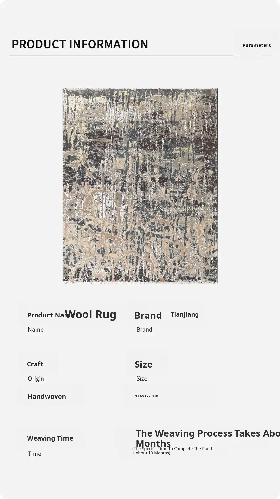 Tianjiang Imported Handcrafted Wool Area Rug - Versatile Abstract Design for Home and Bedroom, 248x310cm