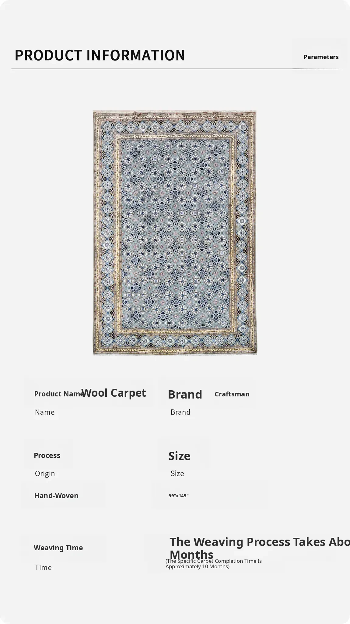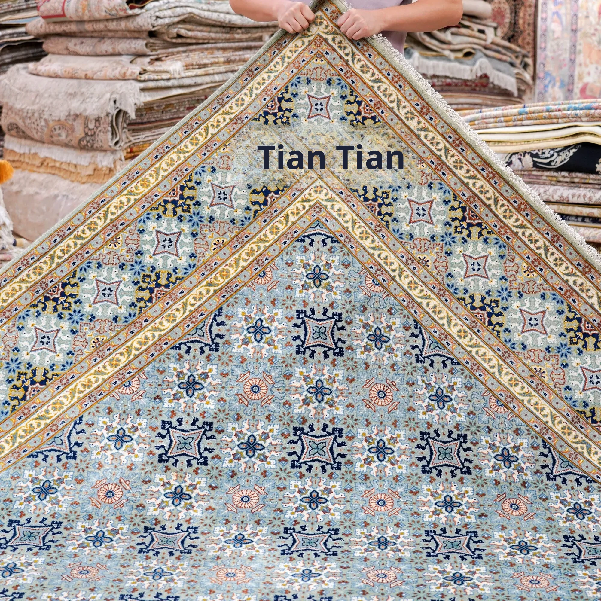 Tianjiang Imported Handcrafted Wool Carpet - Formaldehyde-Free, Stain-Resistant, Classic Isfahan Design for Living Room (252x370cm)
