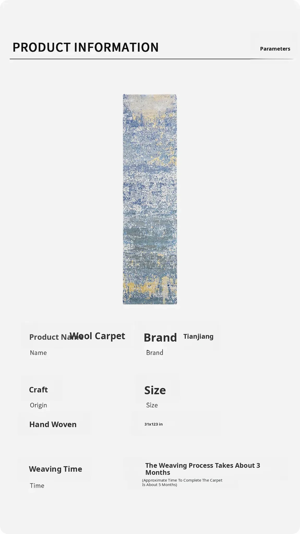 Tianjiang Imported Handcrafted Wool Carpet - High-End Villa Entrance Rug, New Light Luxury Design, 79x312cm