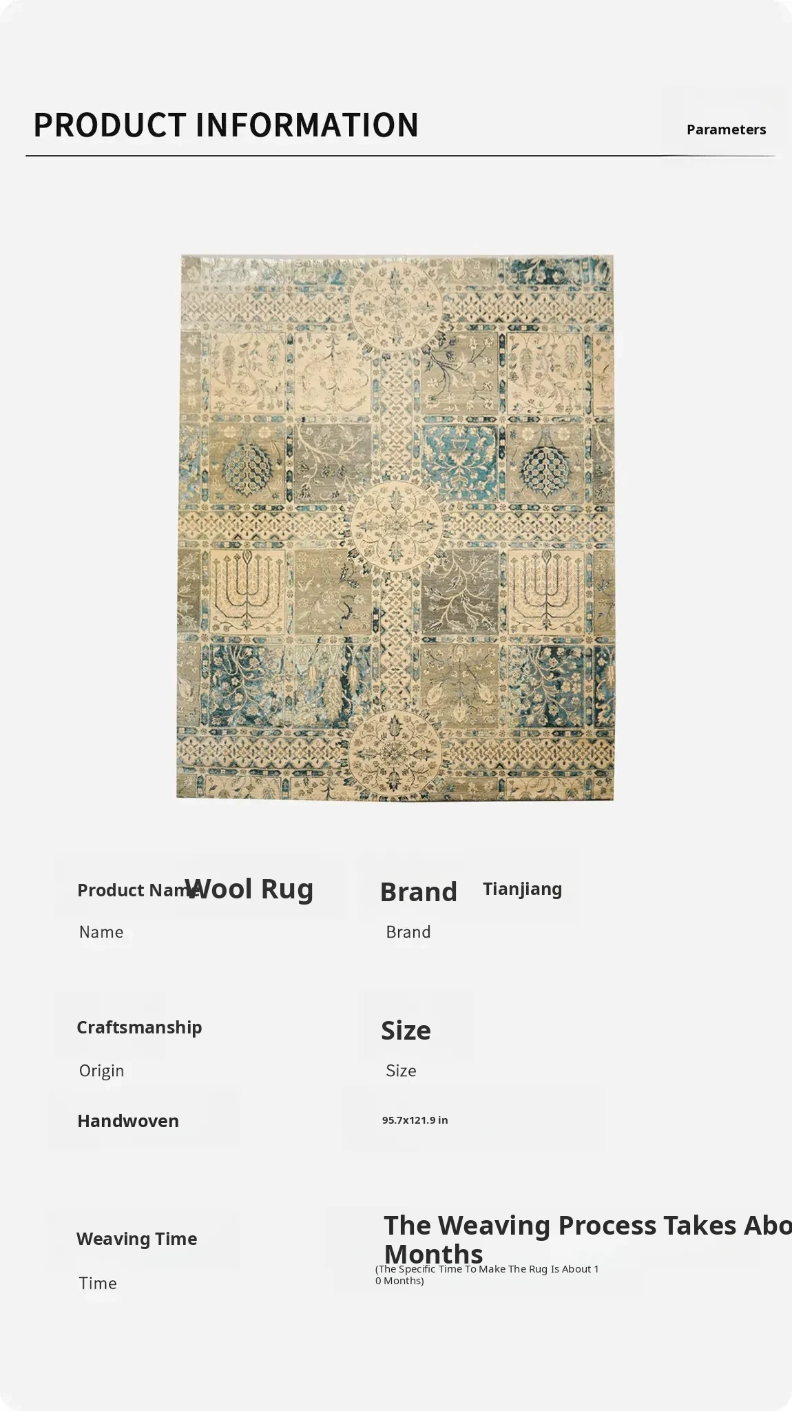 TianJiang Imported Handcrafted Wool Modern Minimalist Luxury Living Room Carpet - 243x307cm, Perfect for Home Décor