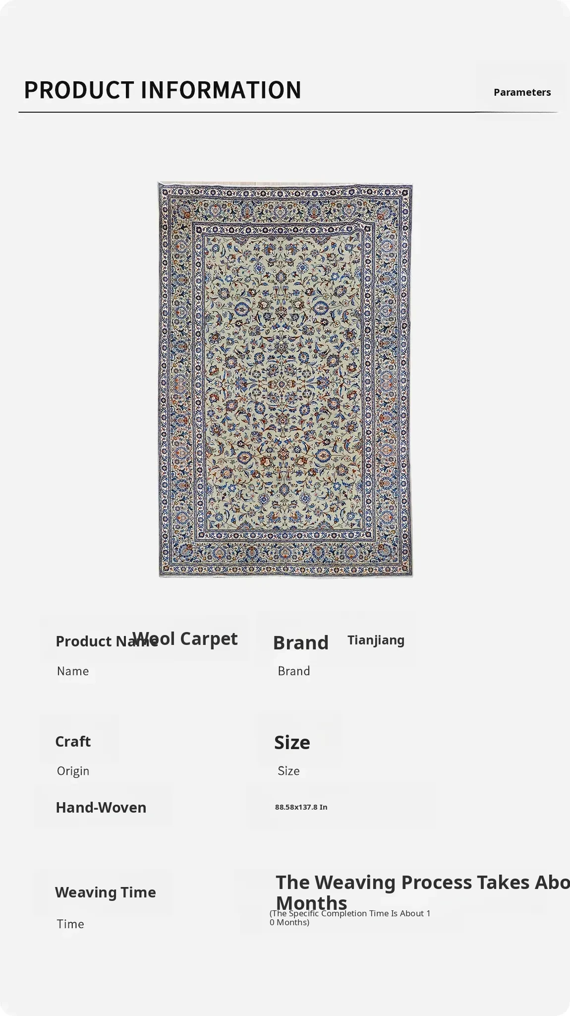 Tianjiang Imported Handmade Wool Area Rug – Persian & American Style for Living Room and Bedroom, Perfect for Coffee Tables, Size: 225x350cm – Elevate Your Space with Luxurious Comfort and Timeless Elegance!