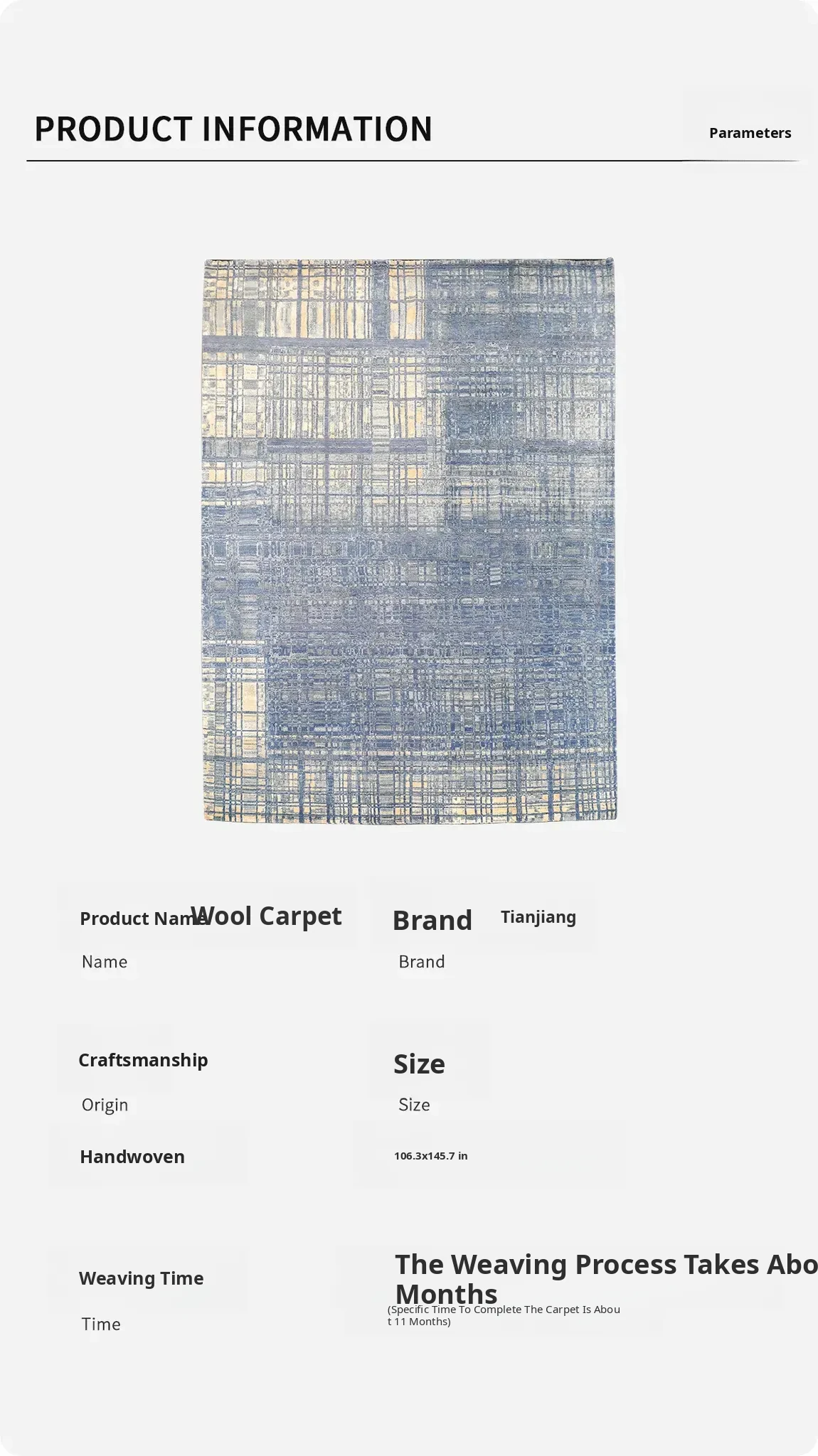 Tianjiang Imported Handmade Wool Area Rug 2024 New Collection - Luxurious Large Carpet for Bedroom and Living Room, Size 272x370cm