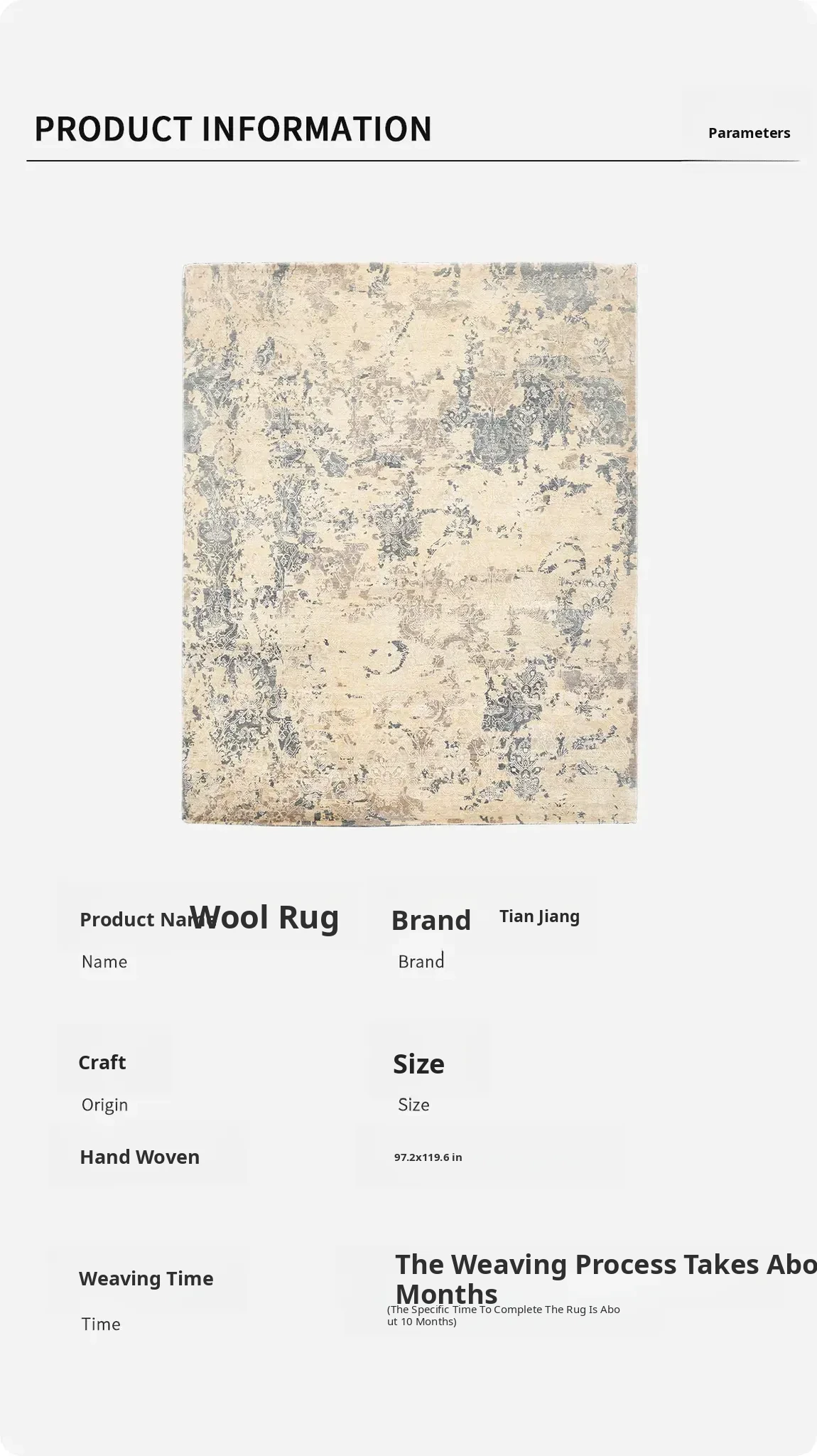 Tianjiang Imported Handmade Wool Area Rug - Designer Recommended Versatile Carpet for Villa Study, 247x304cm - Perfect Blend of Elegance and Comfort