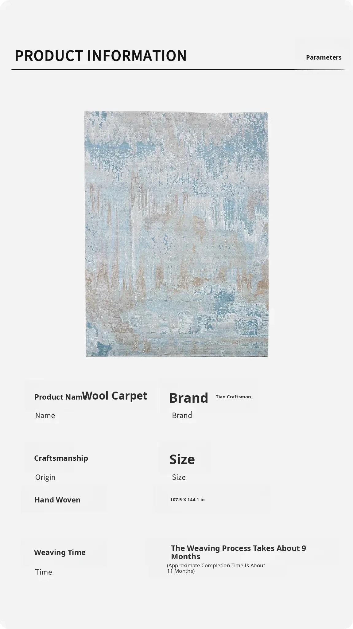 Tianjiang Imported Handmade Wool Area Rug - Luxurious Abstract Design for Home, Bedroom, and Study - 273x367cm