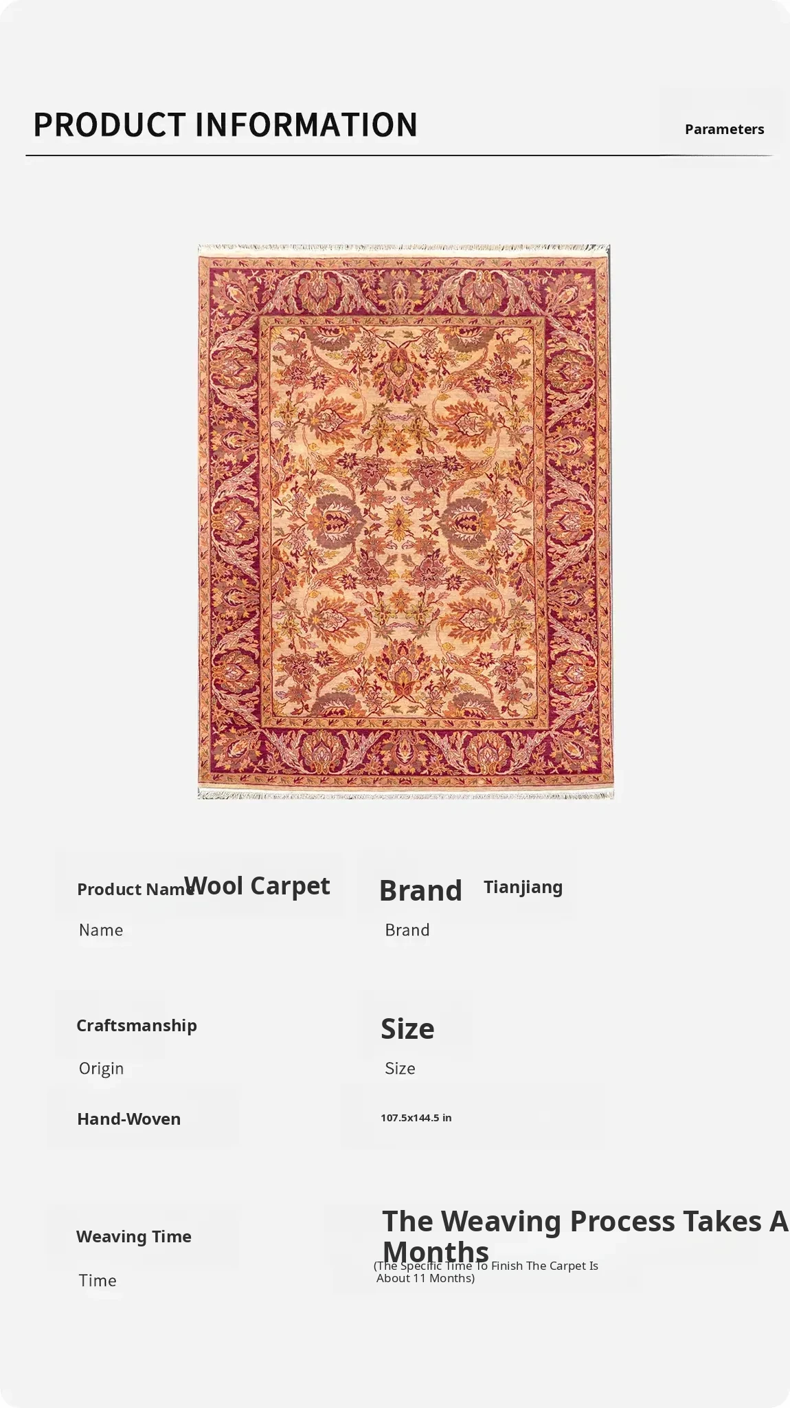 Tianjiang Imported Handmade Wool Area Rug - Luxurious Villa Living Room Carpet, Perfect for Coffee Tables and Bedrooms, Size: 273x368cm