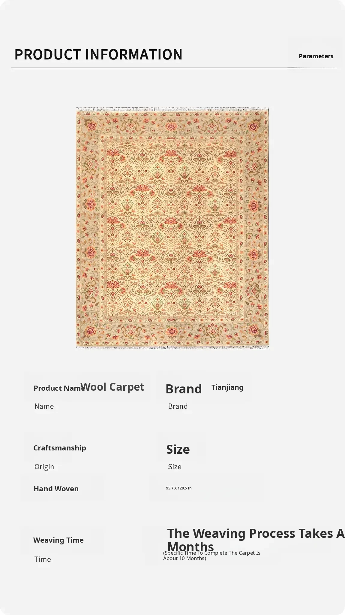 Tianjiang Imported Handmade Wool Area Rug - Minimalist Design for Bedroom and Study, Perfect for Villas and Home Use, Size: 243x306cm