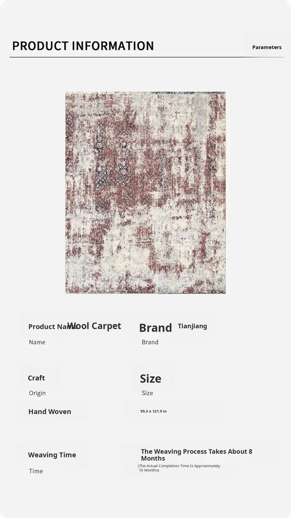 Tianjiang Imported Handmade Wool Area Rug - Minimalist Luxury Carpet for Living Rooms and Villas, Perfect for Bedrooms, Size: 242x307cm