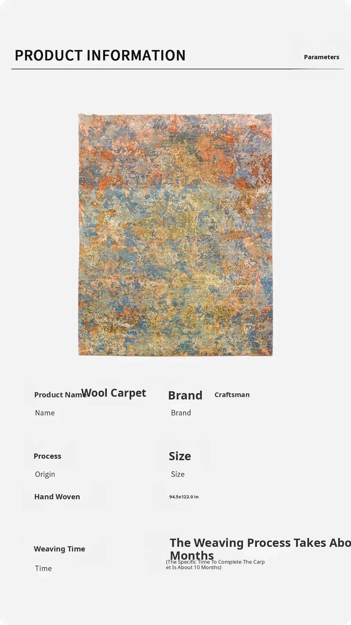 Tianjiang Imported Handmade Wool Area Rug - Modern Luxury High-End Carpet for Living Room & Bedroom, 240x310cm