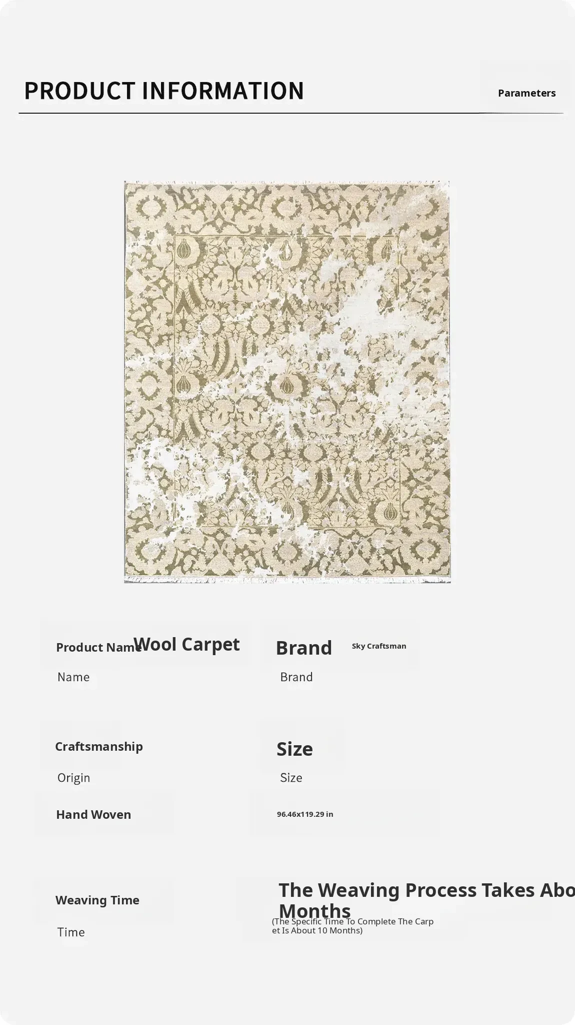 Tianjiang Imported Handmade Wool Area Rug - Versatile Abstract Design for Villa Living Rooms - 245x303 cm