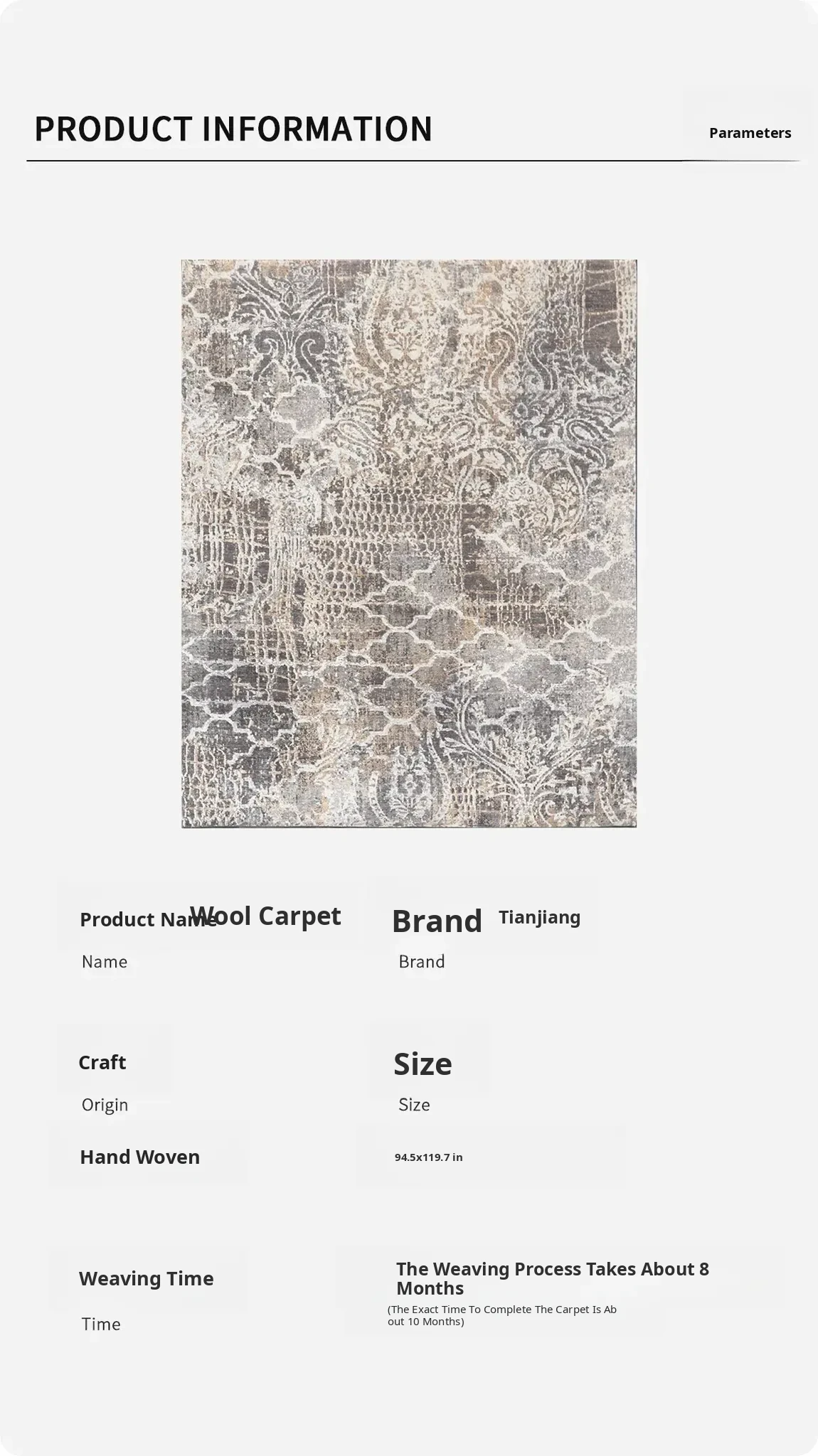 Tianjiang Imported Handmade Wool Carpet - Elegant Minimalist European Modern Luxury Area Rug for Living Room and Bedroom, 240x304cm