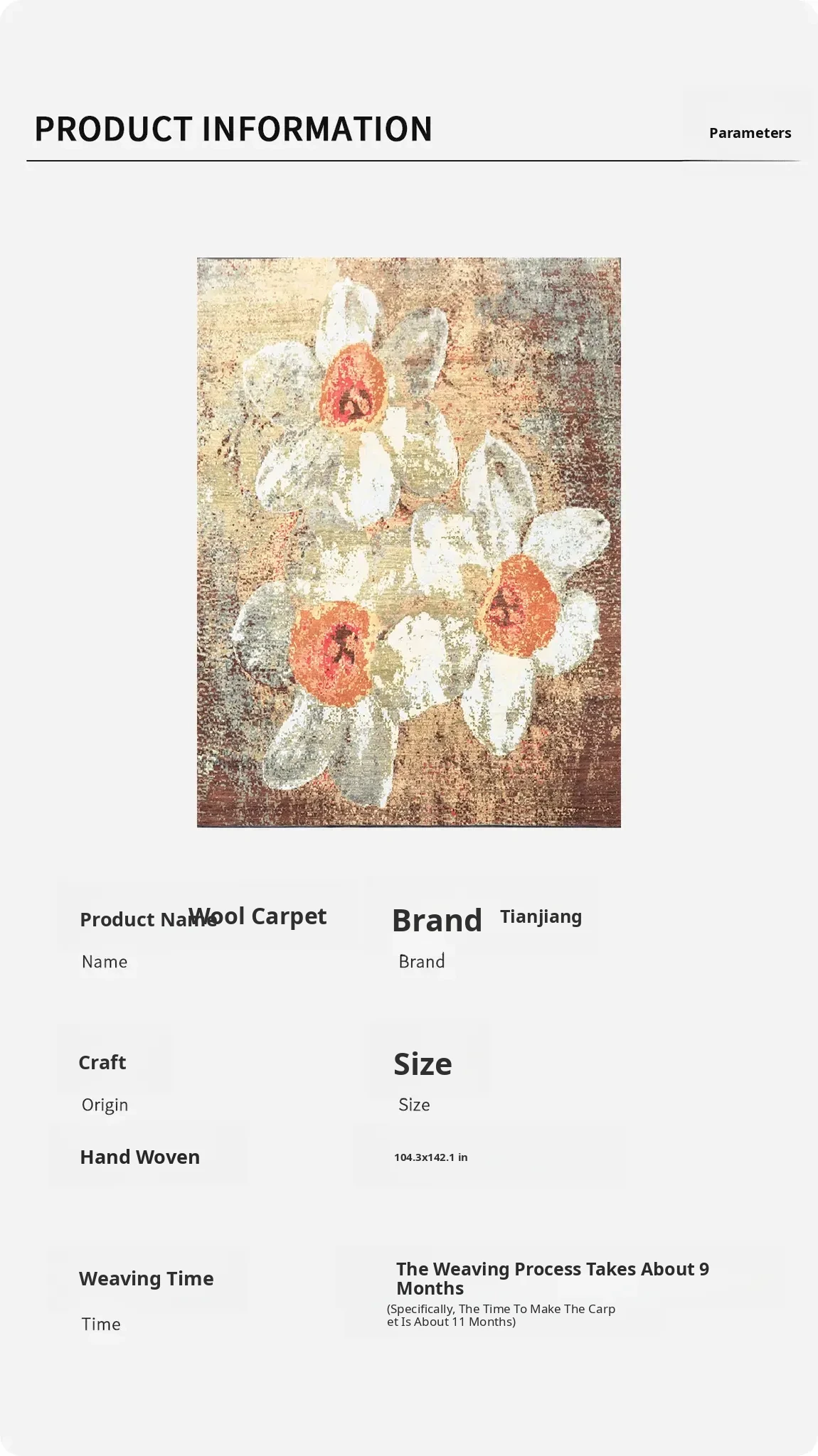 Tianjiang Imported Handmade Wool Carpet for Villa - Versatile Modern Area Rug for Living Room & Dining Room, Size 265x361cm