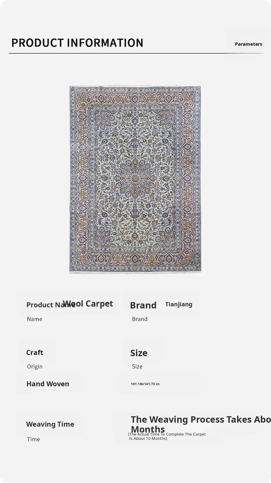 Tianjiang Imported Handmade Wool Carpet - Luxurious Glue-Free Area Rug for Living Room, 250x362cm, Original Import