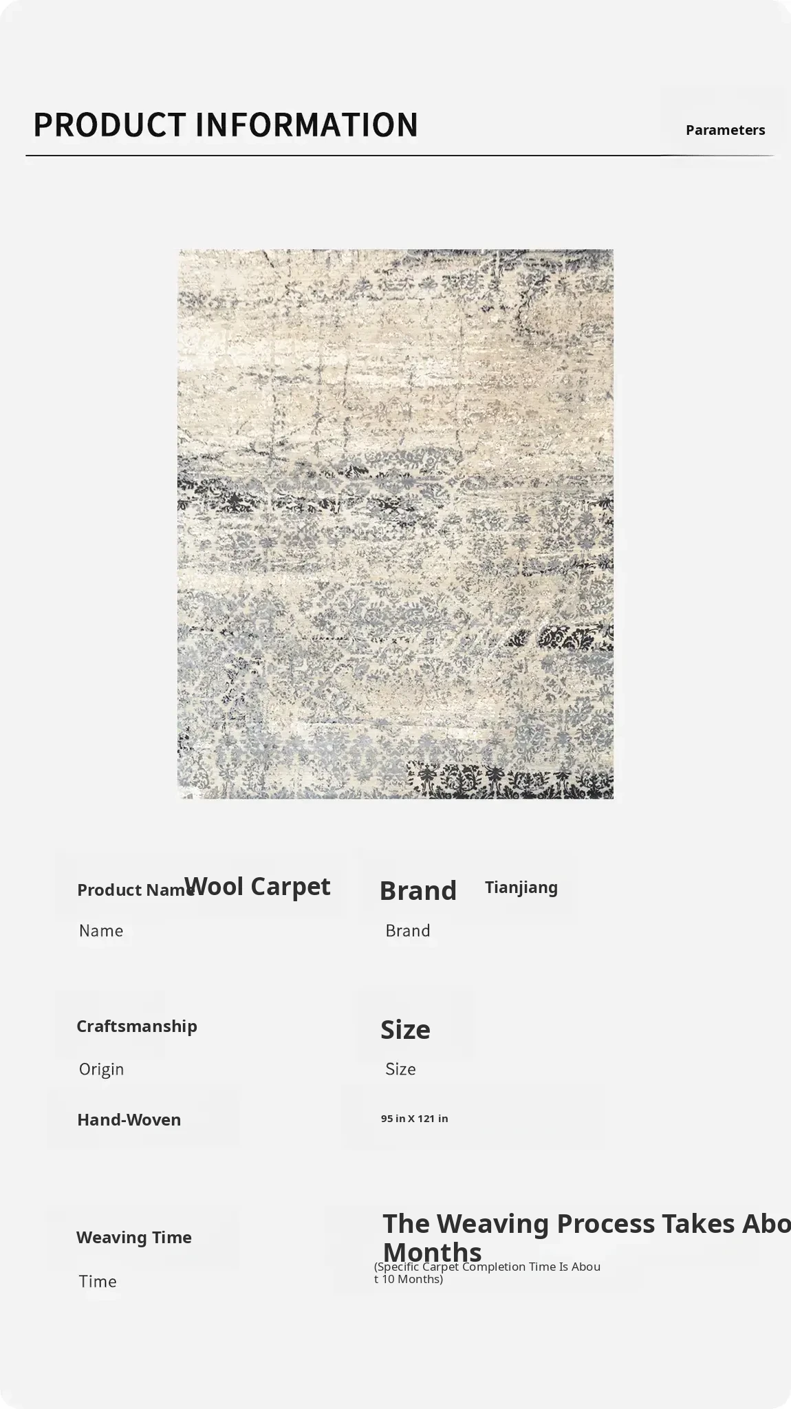 Tianjiang Imported Handmade Wool Luxury Ins-Style Area Rug – Modern Minimalist Carpet for Living Room, Home Use, Size 241x308cm