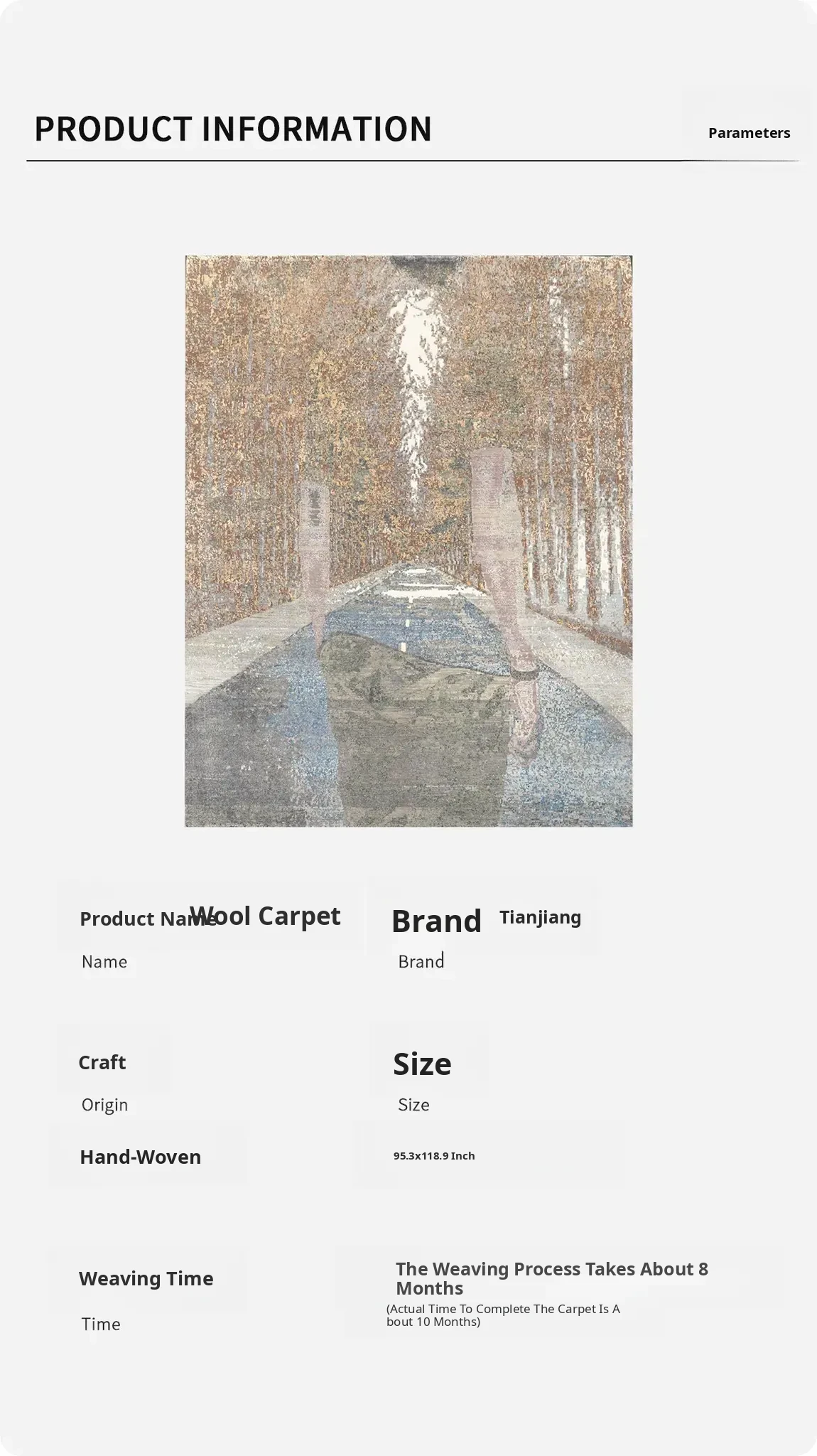 TianJiang Luxury Handcrafted Imported Wool Area Rug for Home Office - Abstract Style High-Quality Carpet 242x302cm