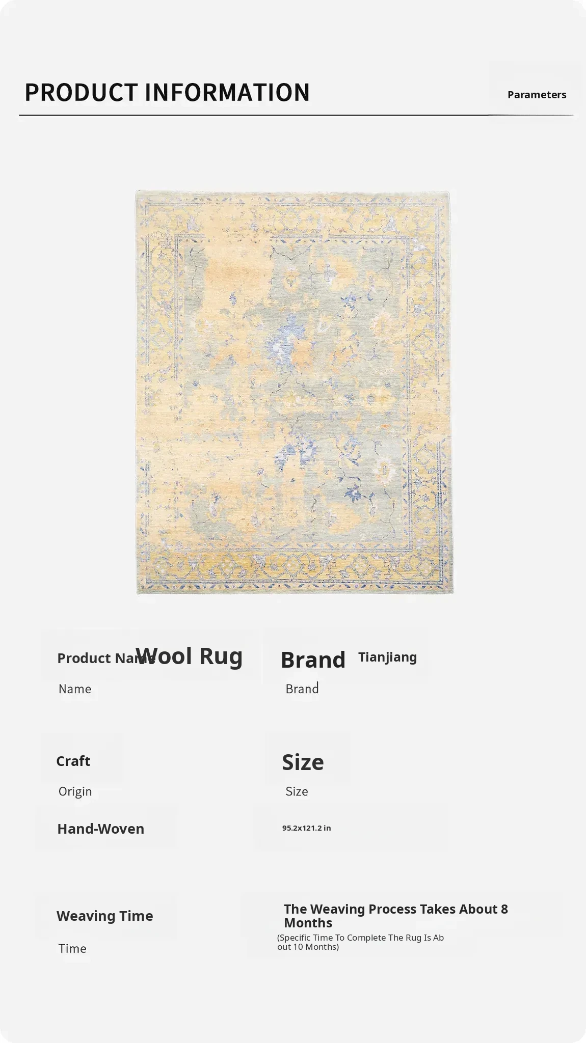 Tianjiang Premium Handmade Wool Carpet - 2024 New Arrival, Luxurious Full Coverage Area Rug for Bedroom and Study, Size: 241x308cm
