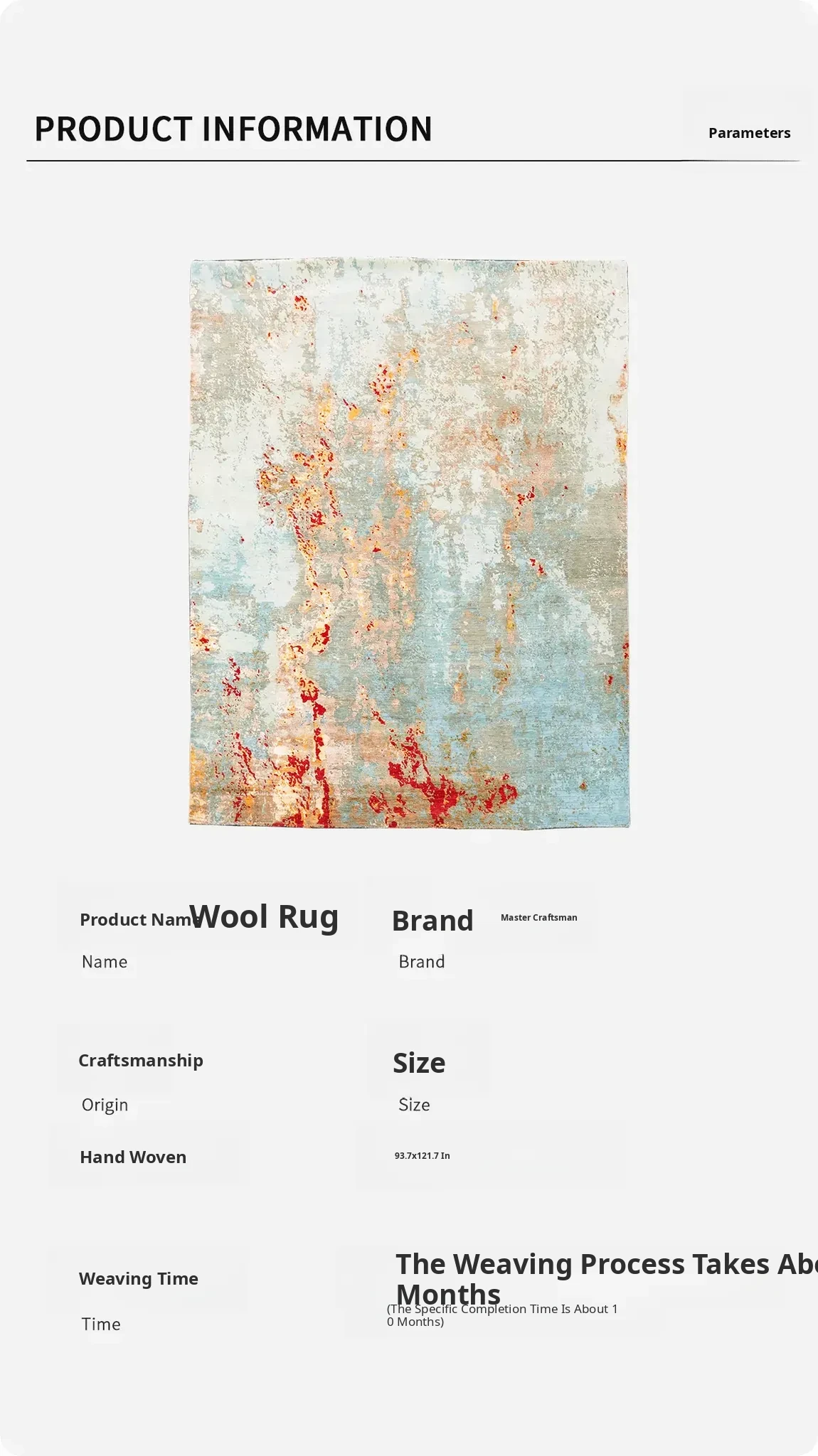 Tianjiang Premium Imported Handmade Wool Area Rug - Versatile, Easy-to-Clean Carpet for Living Room & Dining Room - 238x307cm