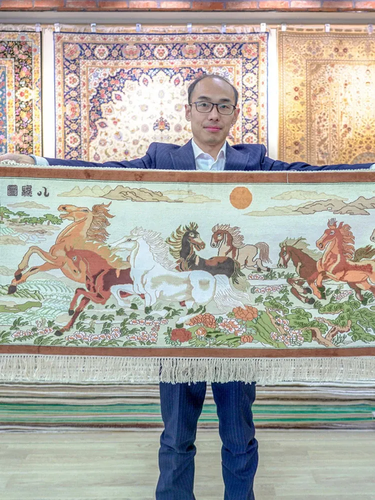 Heavenly Artisan Carpet 60x120cm - Eight Steeds Tapestry for Villa Living Room and Bedroom Decor