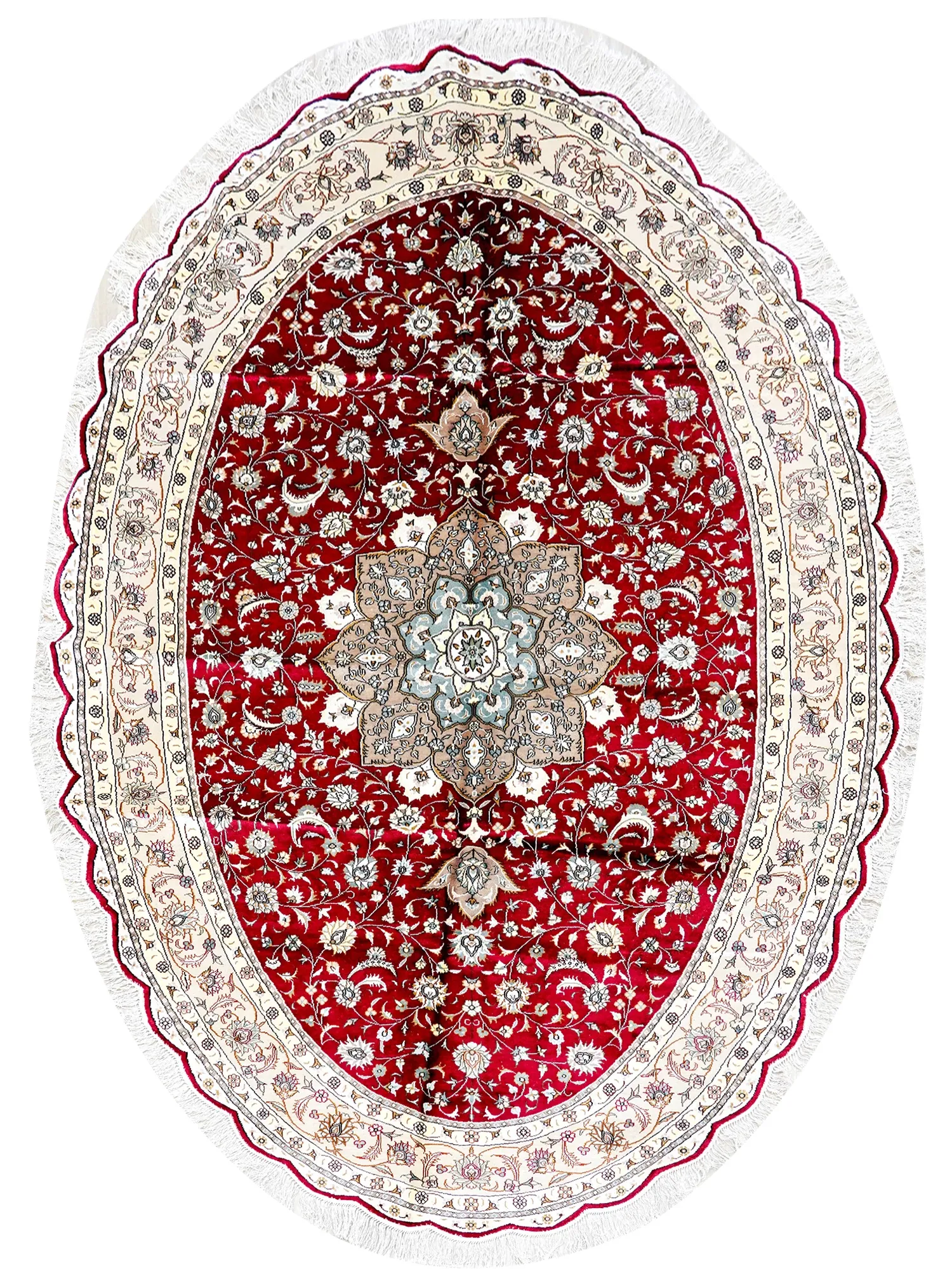 Heavenly Artisan Handcrafted Silk Carpet - Classic Red, Blue, and Coffee Colors, Hand-Knotted, 259x370cm - Luxurious Elegance for Your Home Decor