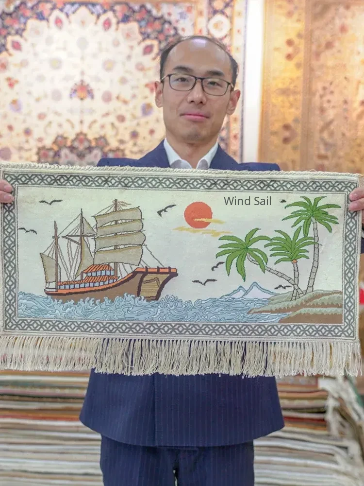 Persian Carpet by Tianjiang - "Smooth Sailing" Scenic Hand-Knotted Silk Tapestry, Exquisite Artistry for Elegant Home Décor