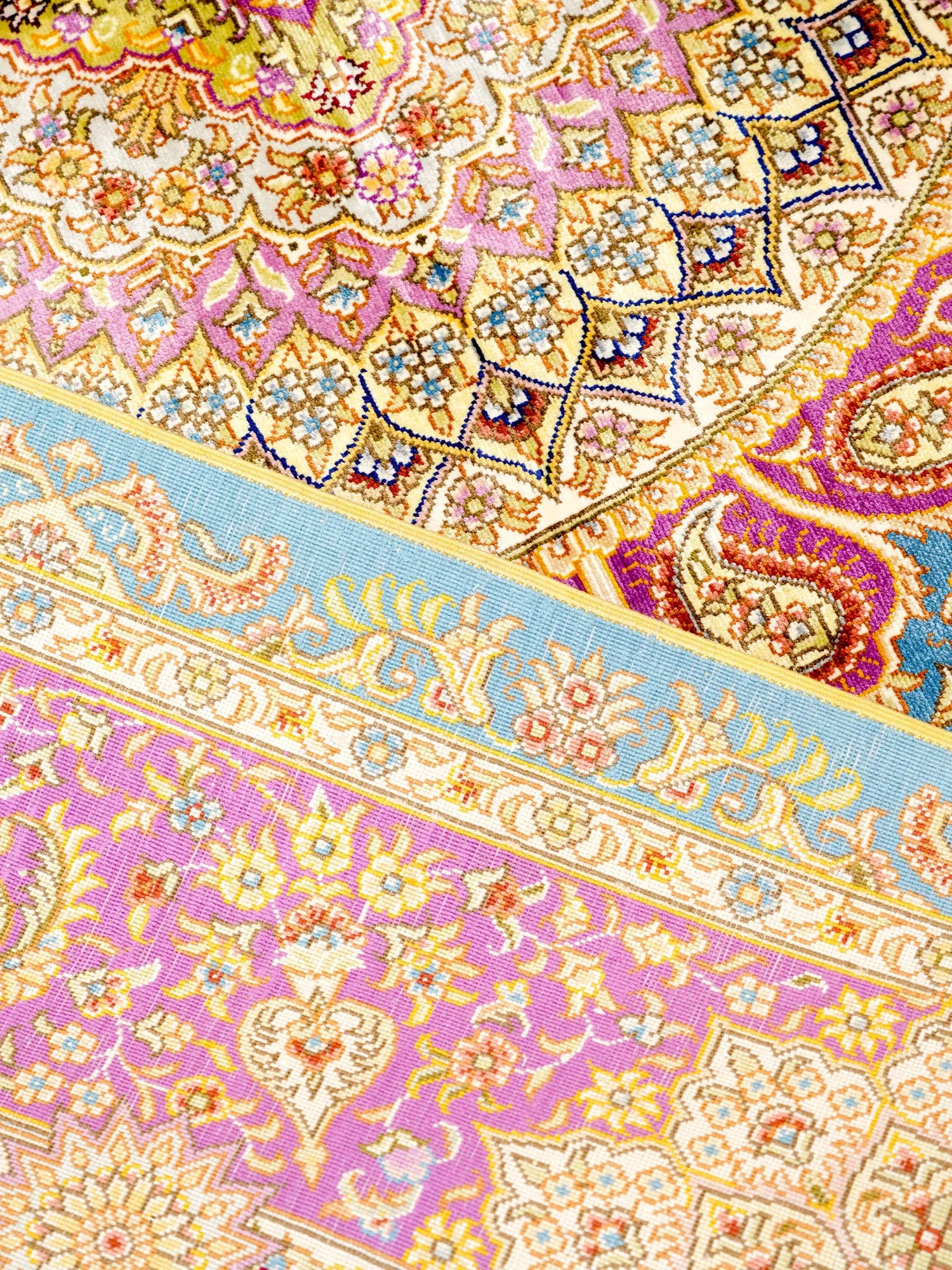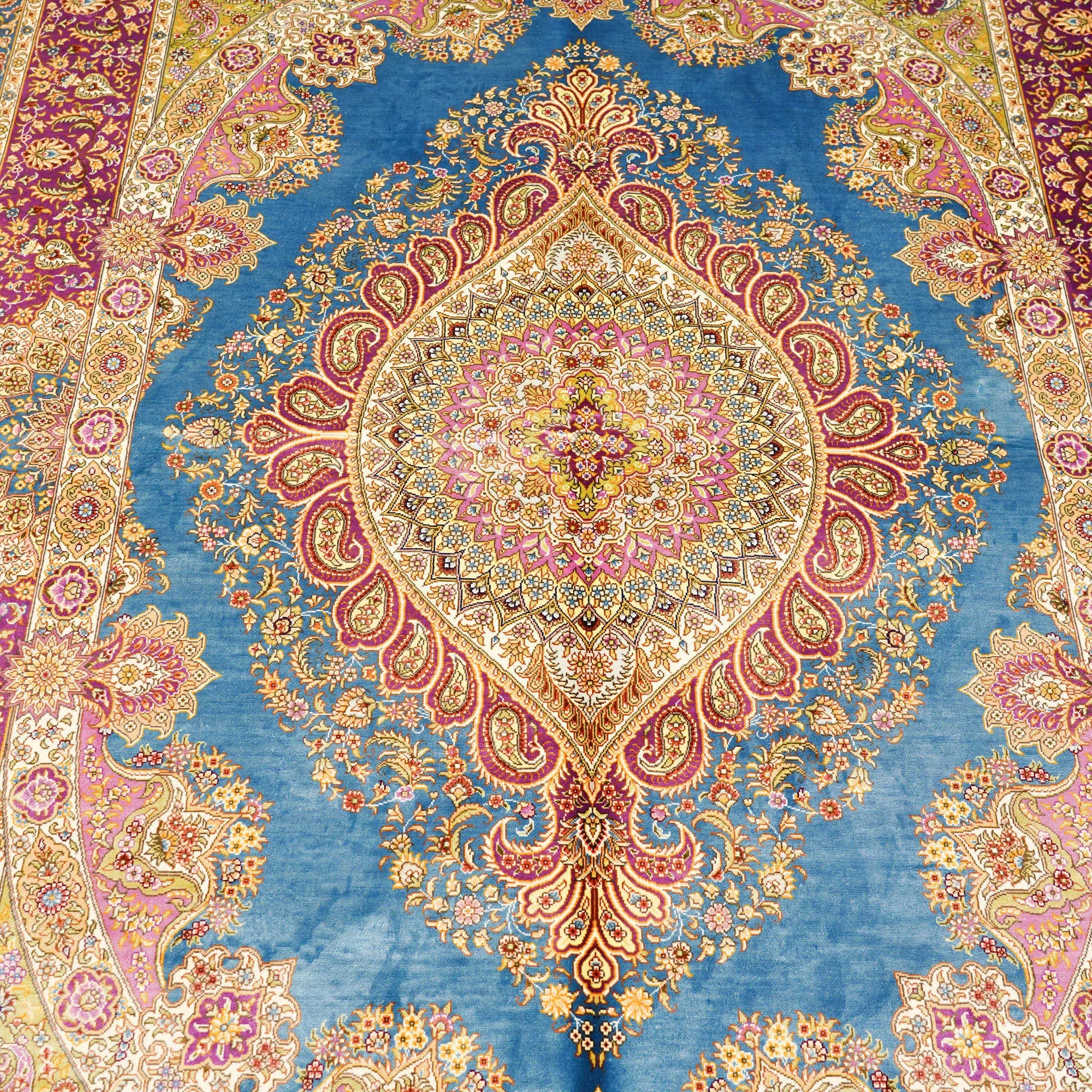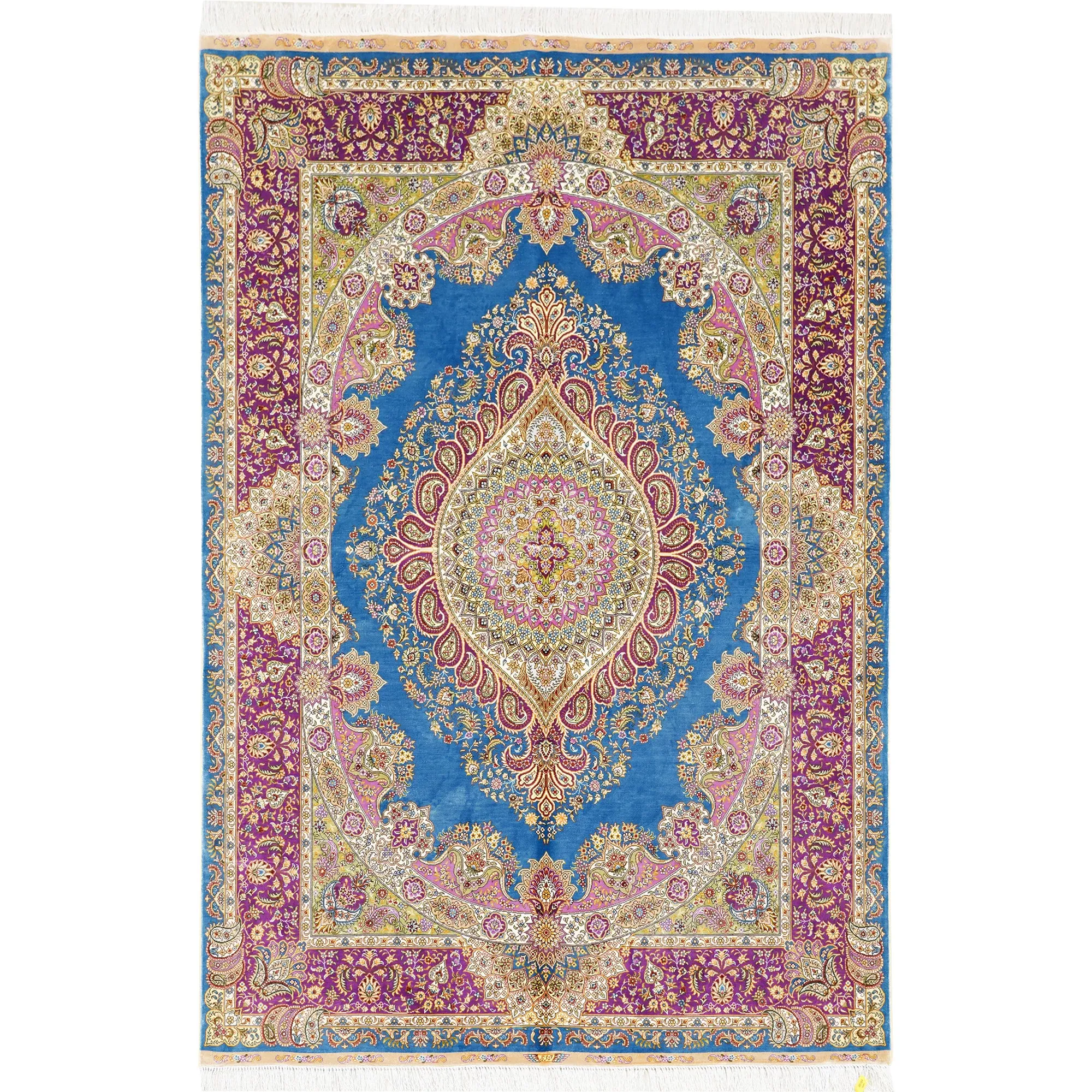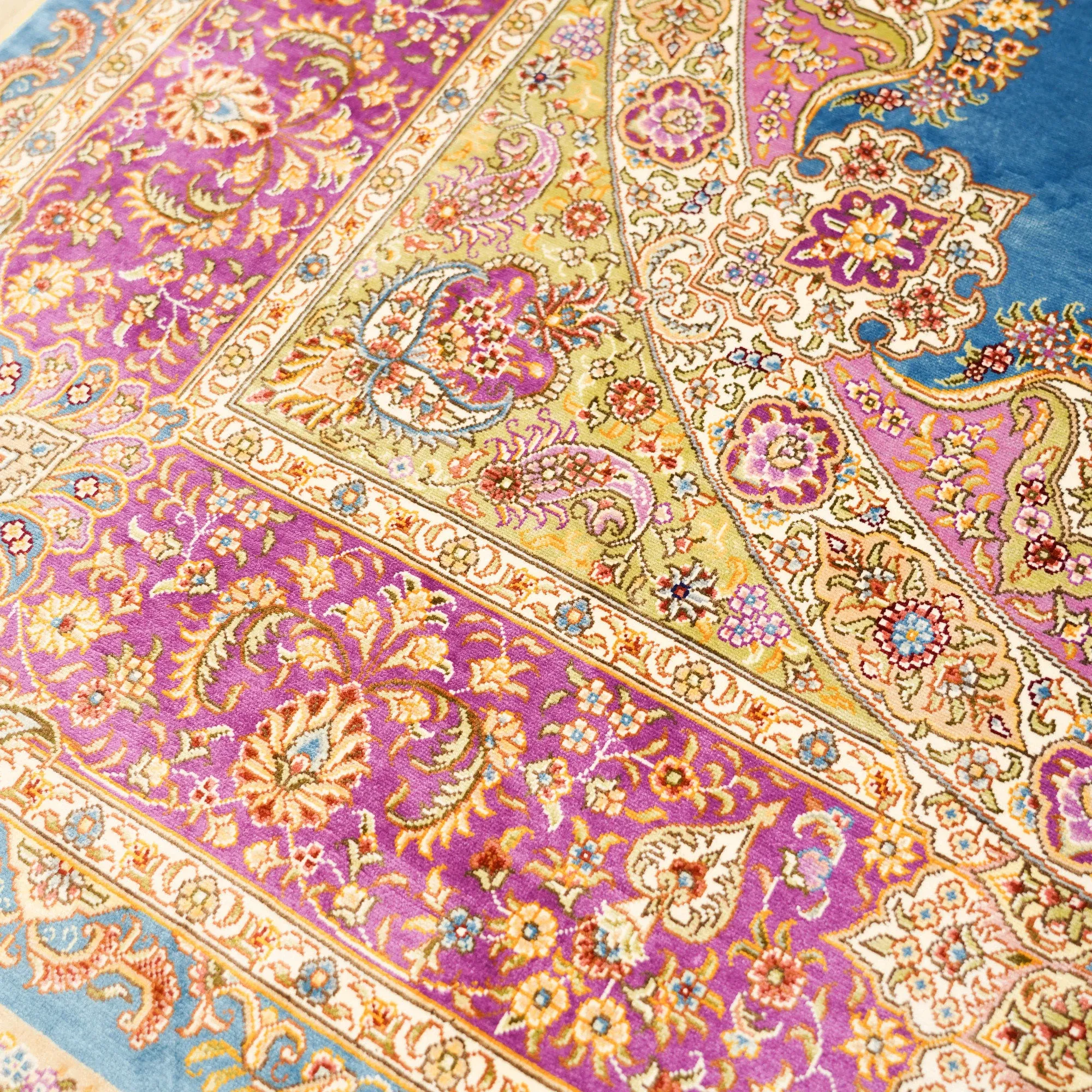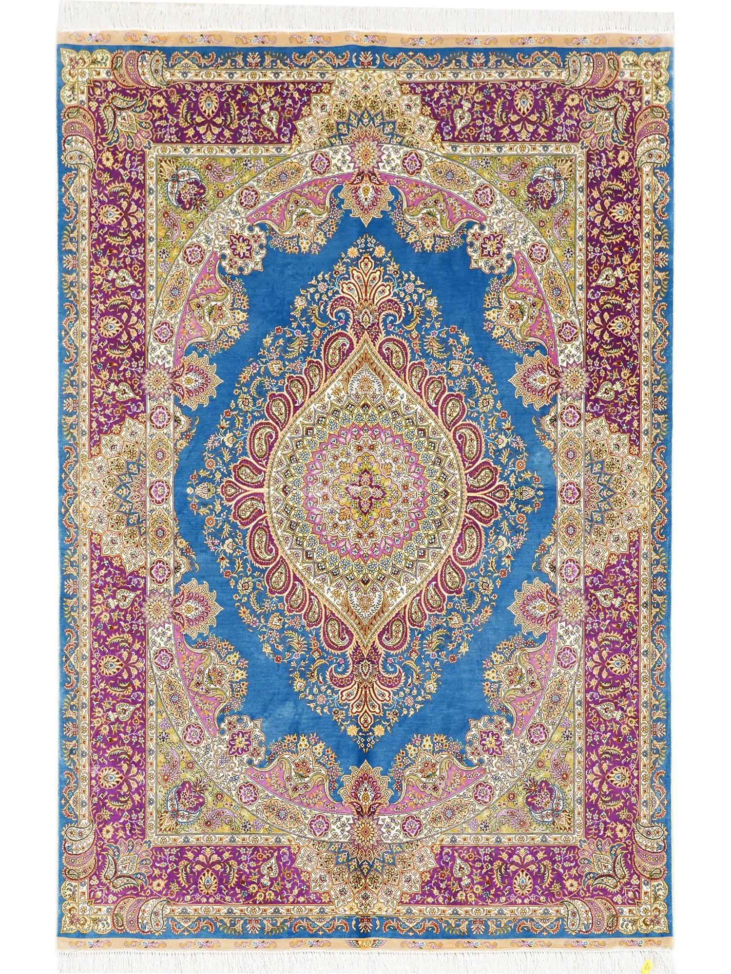 天匠手作の本物シルクラグ - クラシックなブルーのペルシャラグ、ヴィラの寝室や書斎に最適!サイズ150x230cm、洗練された空間を演出します。