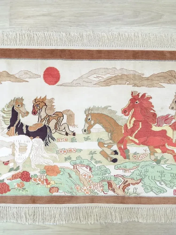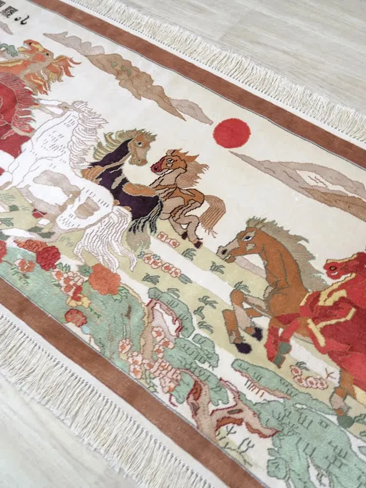 天匠手作カーペット 60x120cm 八騎士の図柄 ヴィラのリビングや寝室にぴったりのタペストリー!おしゃれで高級感溢れるデザインで、居住空間を一層魅力的に演出します。