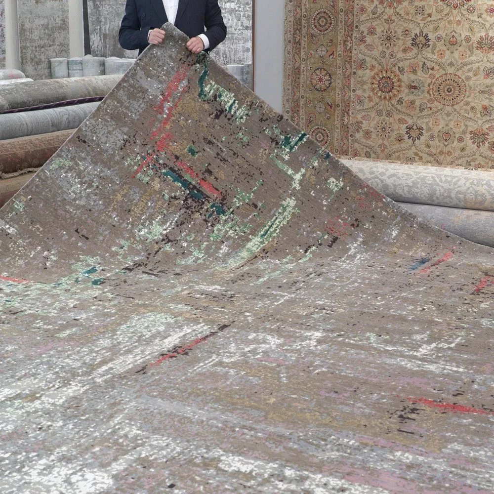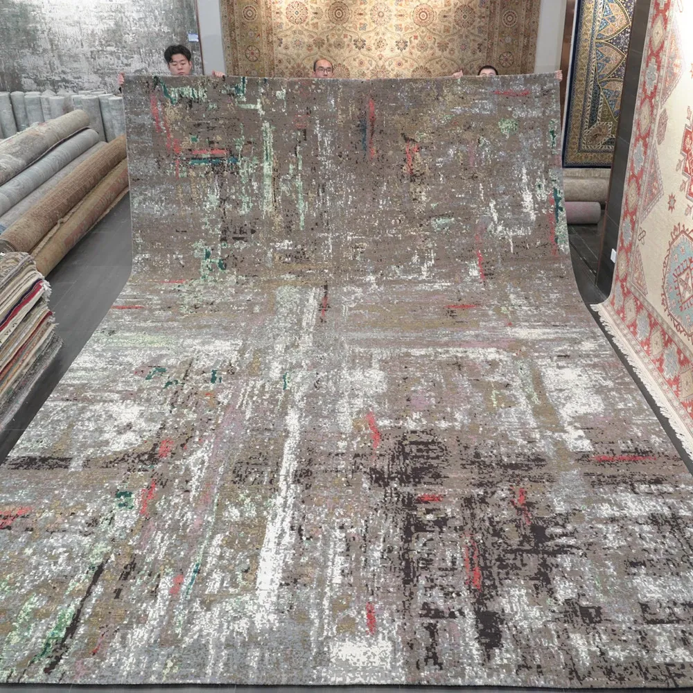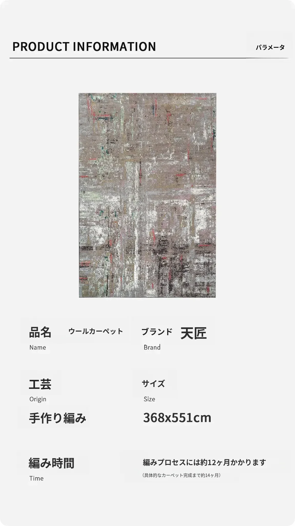 天匠のハンドメイド高級輸入ウールラグ - リビングや寝室にぴったりの368x551cmの長方形カーペットで、優雅さと温かみを演出します。上質な素材で手作りされた一品をお楽しみください。