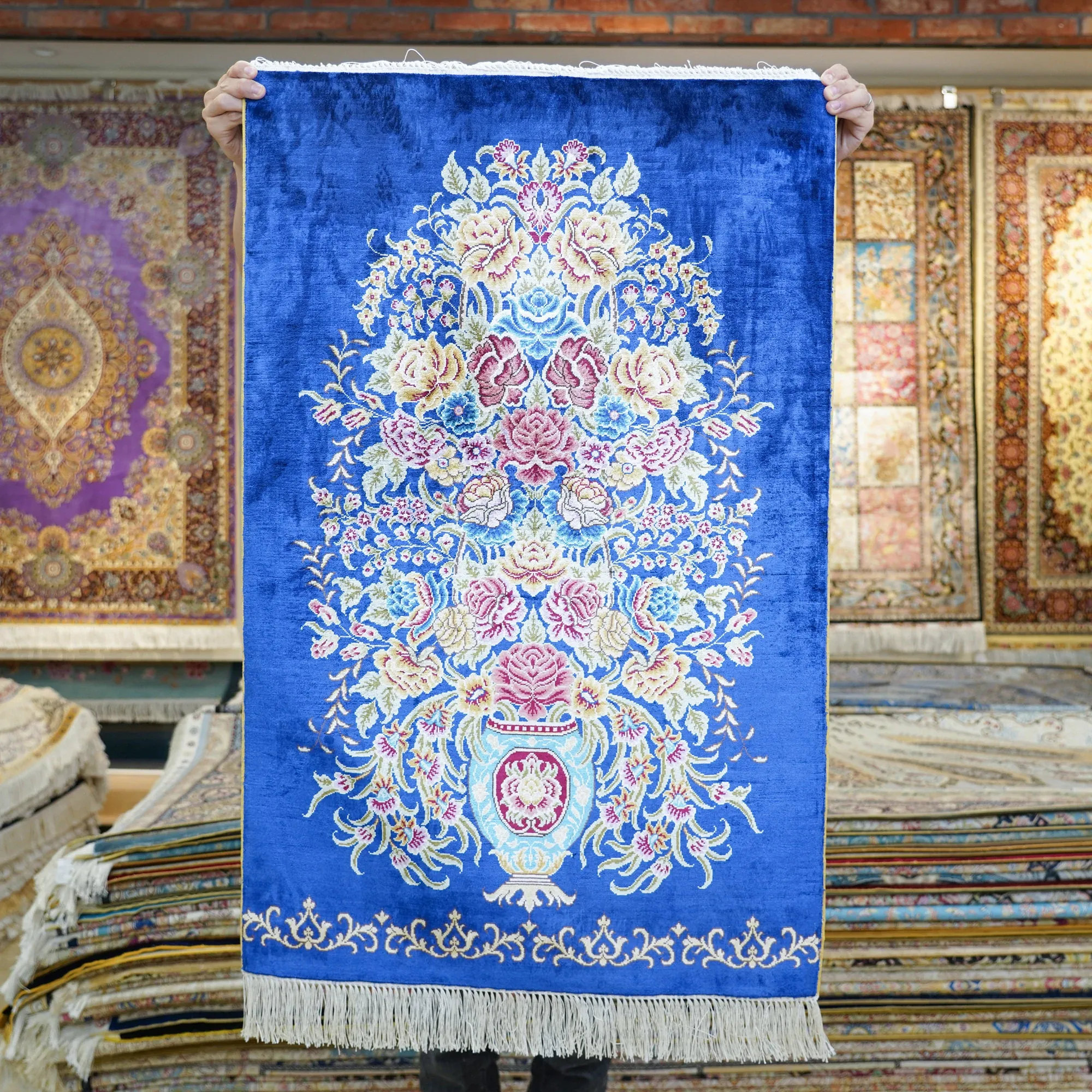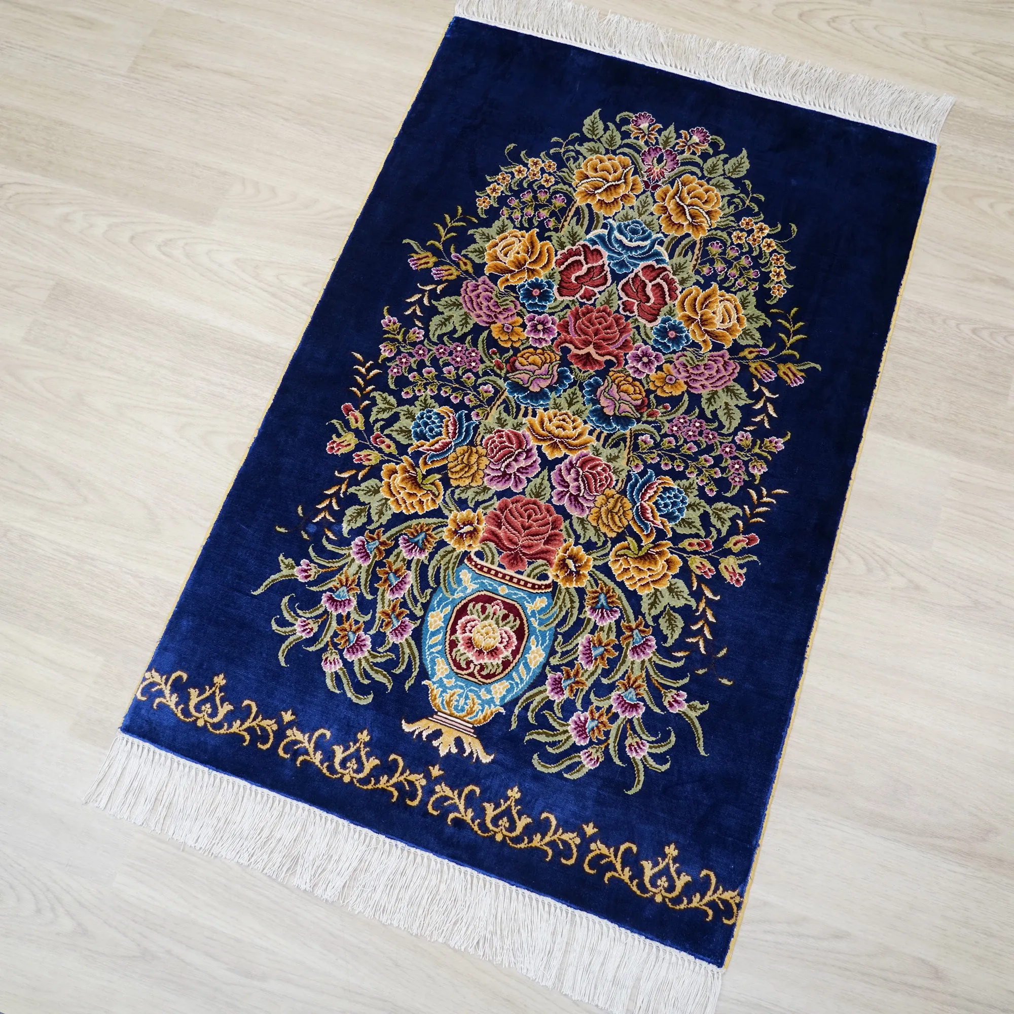 Artisan Handcrafted Silk Area Rug - Elegant Home Entrance & Bedroom Decorative Carpet, Perfect Size 60x90cm for Cozy Living Spaces