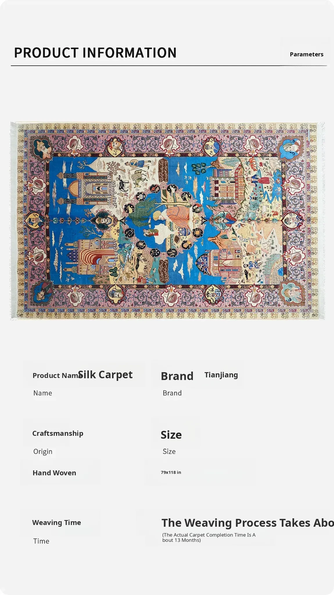 Artisan Handcrafted Silk Carpet - Premium Persian Style Area Rug for Home, 200x300cm, Perfect for Middle East, Europe & USA Decor