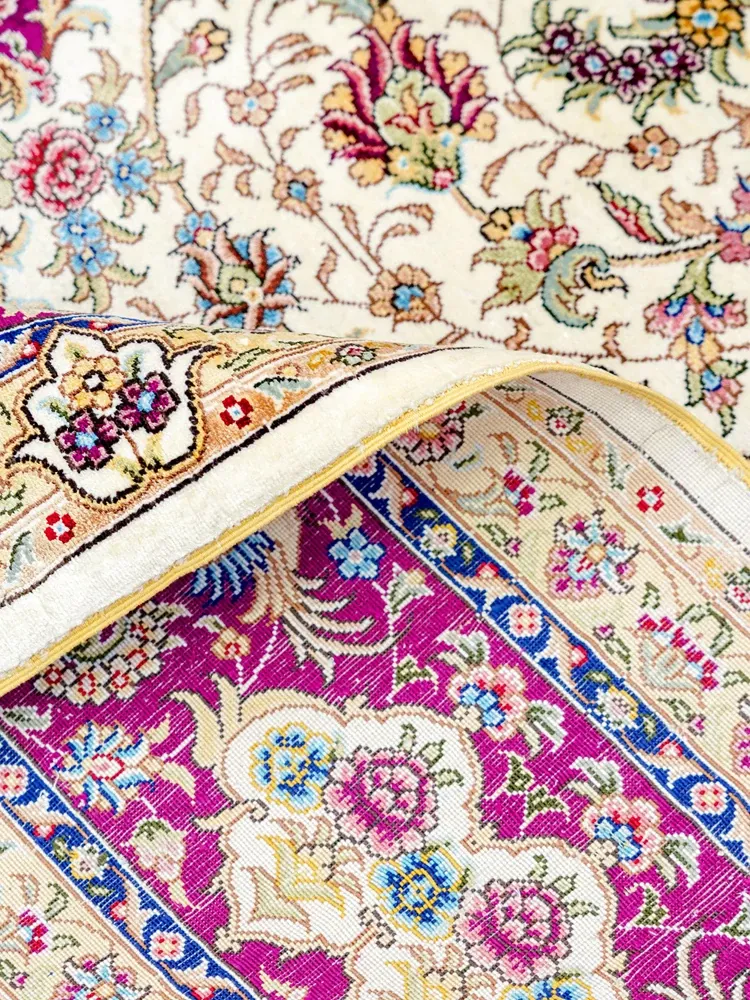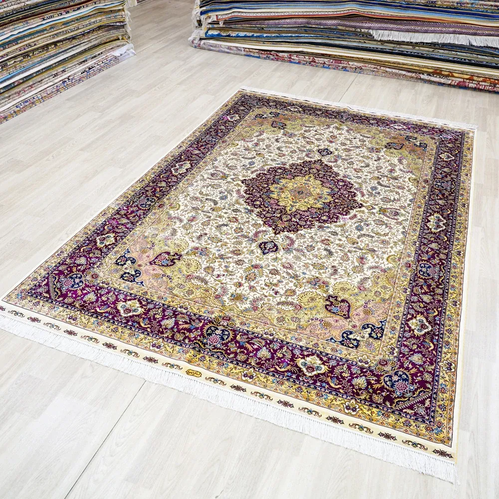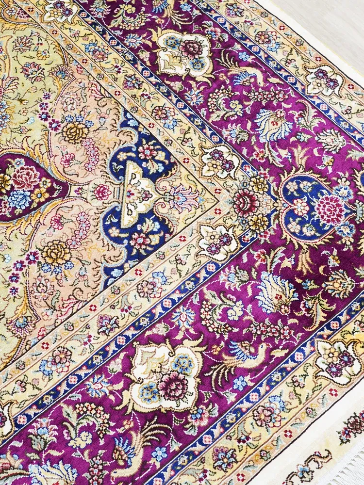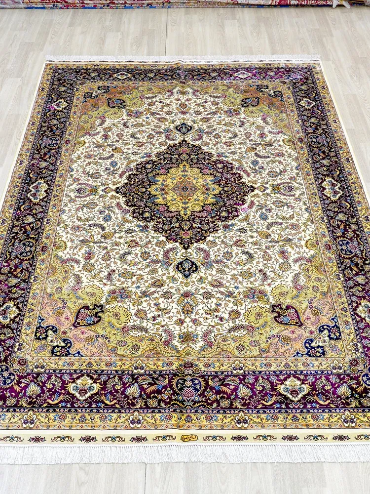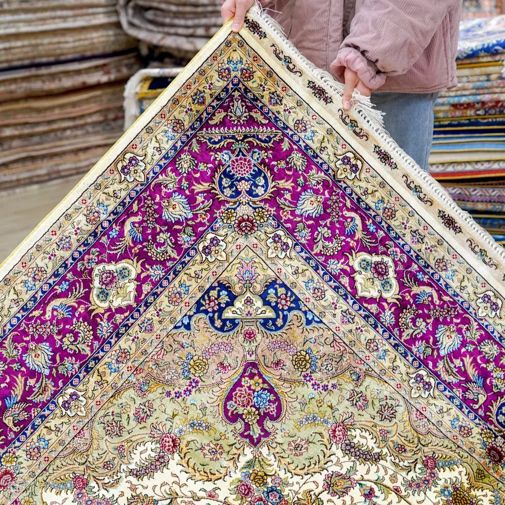 天匠の手作りシルクカーペット、クラシックなペルシャドームデザイン。高級感あふれる180x270cmの寝室用カーペットで、上質な空間を演出します。あなたの家に特別な魅力をプラス!