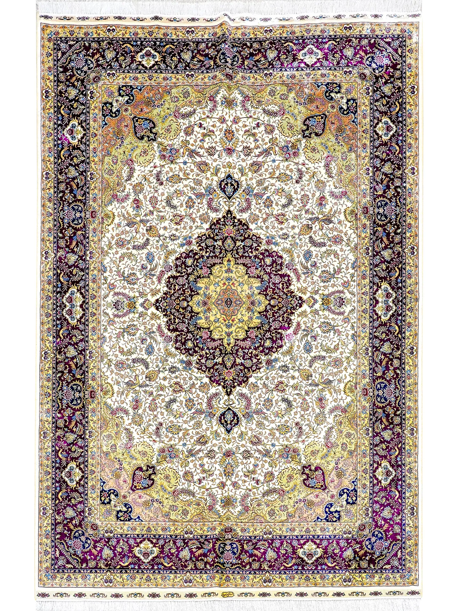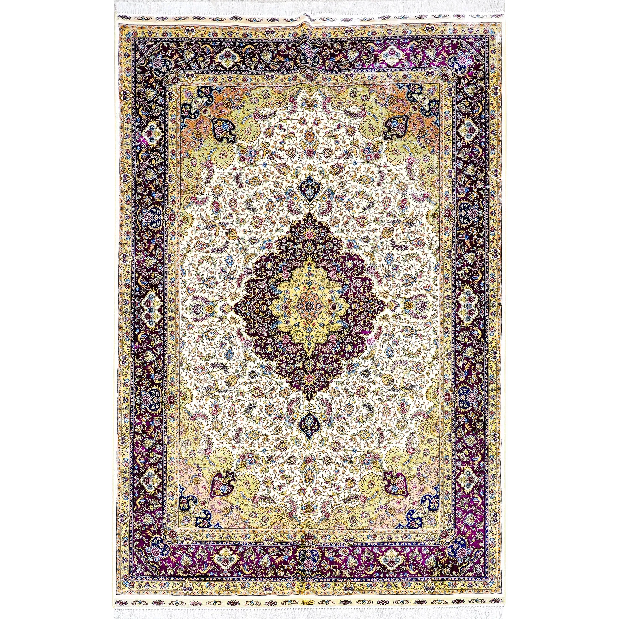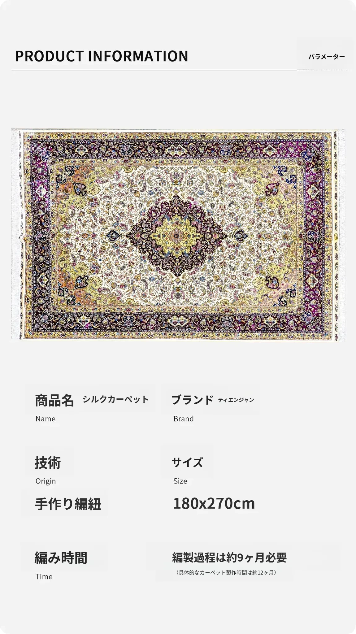 天匠の手作りシルクカーペット、クラシックなペルシャドームデザイン。高級感あふれる180x270cmの寝室用カーペットで、上質な空間を演出します。あなたの家に特別な魅力をプラス!