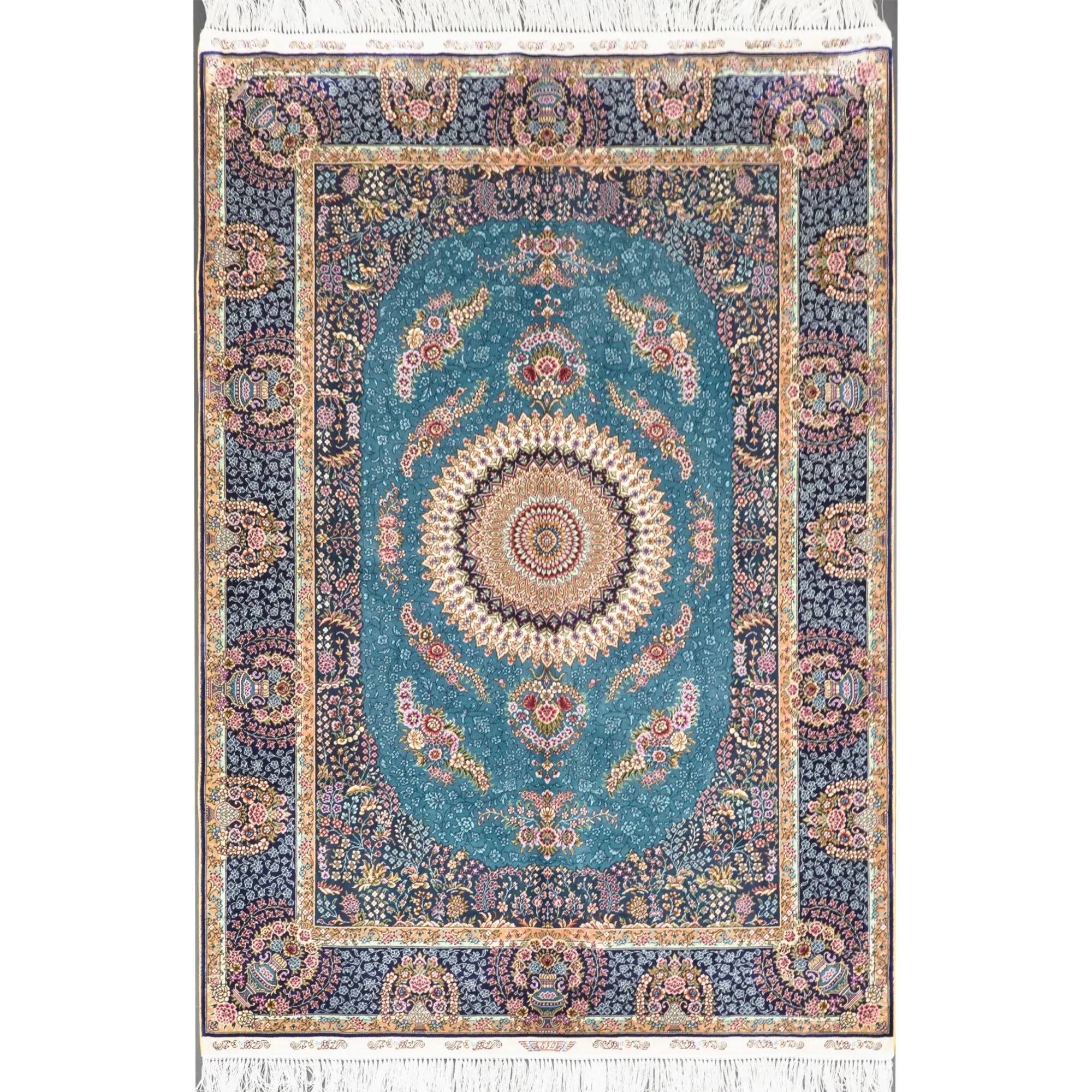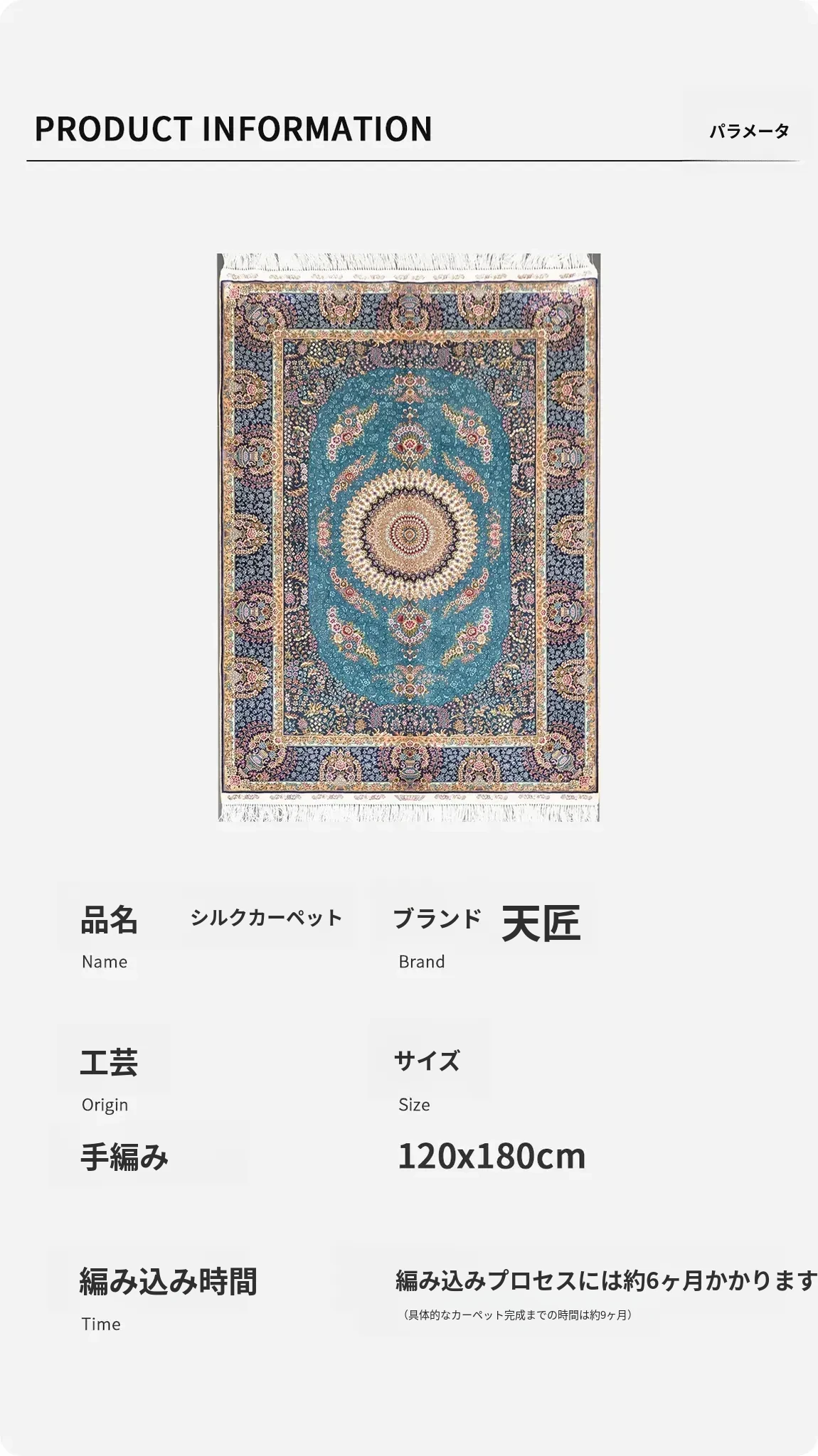天匠手作の本格シルクラグ - ペルシャスタイルのラグで、贅沢なリビングや子供部屋に最適!サイズ120x180cm、優雅なデザインでお部屋を華やかに演出します。