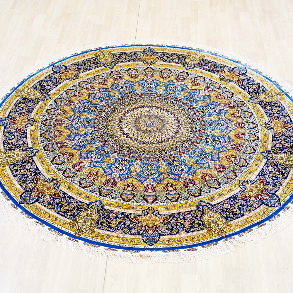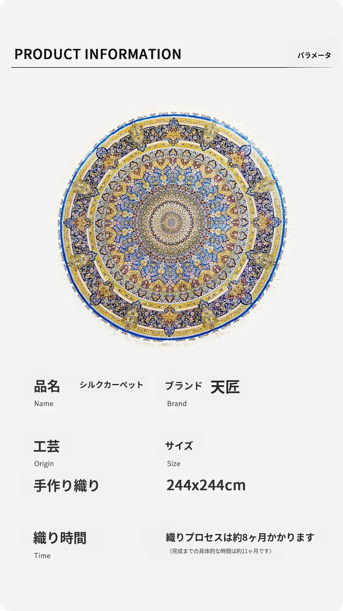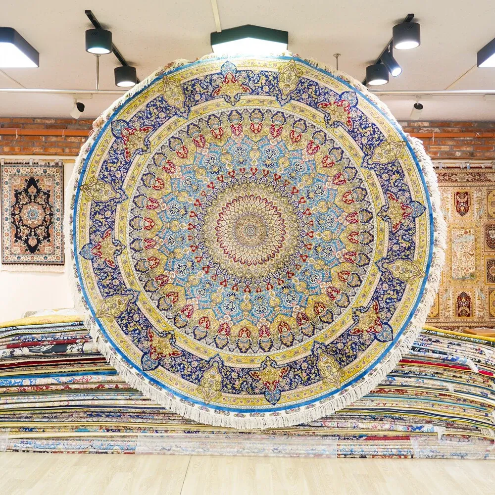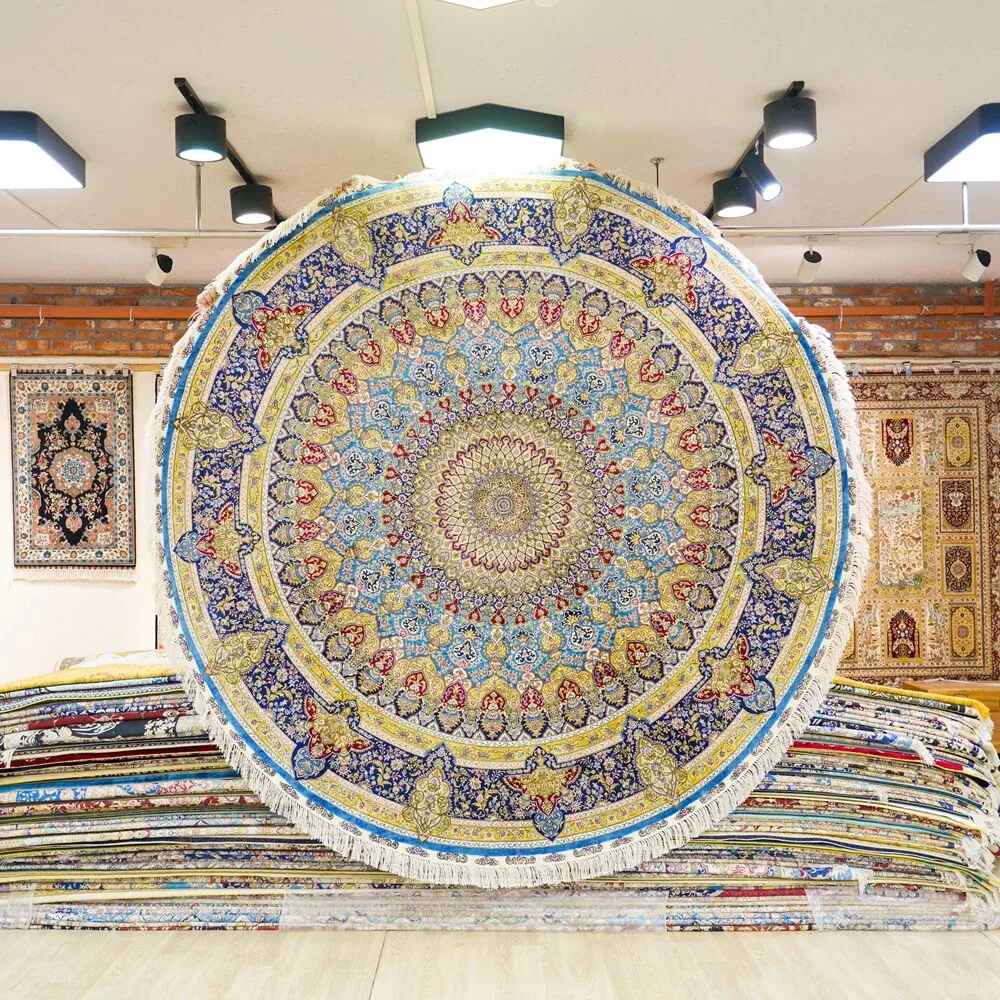 天匠の手作りシルクラグ - ヴィラのリビングや寝室にぴったりな240x240cmの円形ペルシャ絨毯。高級感あふれるデザインで、居心地の良い空間を演出します。