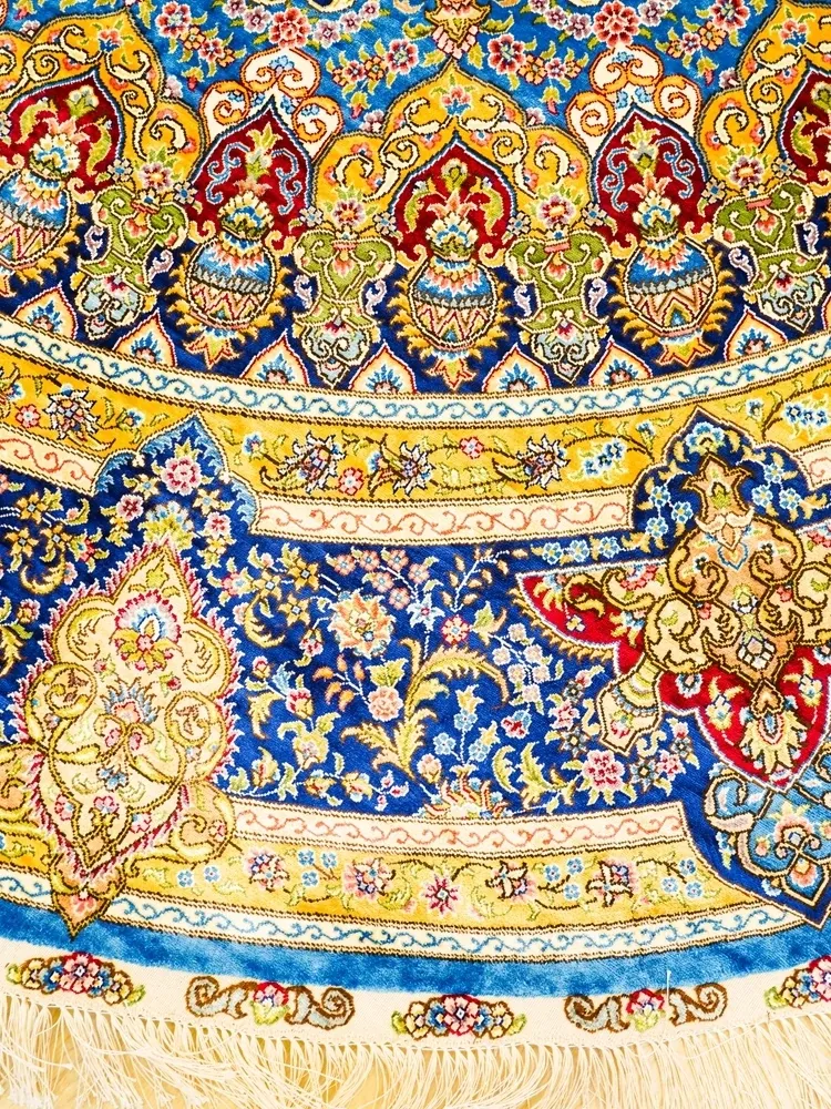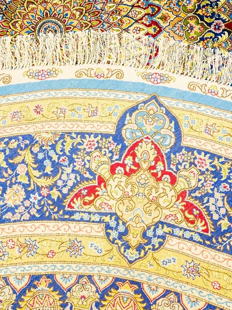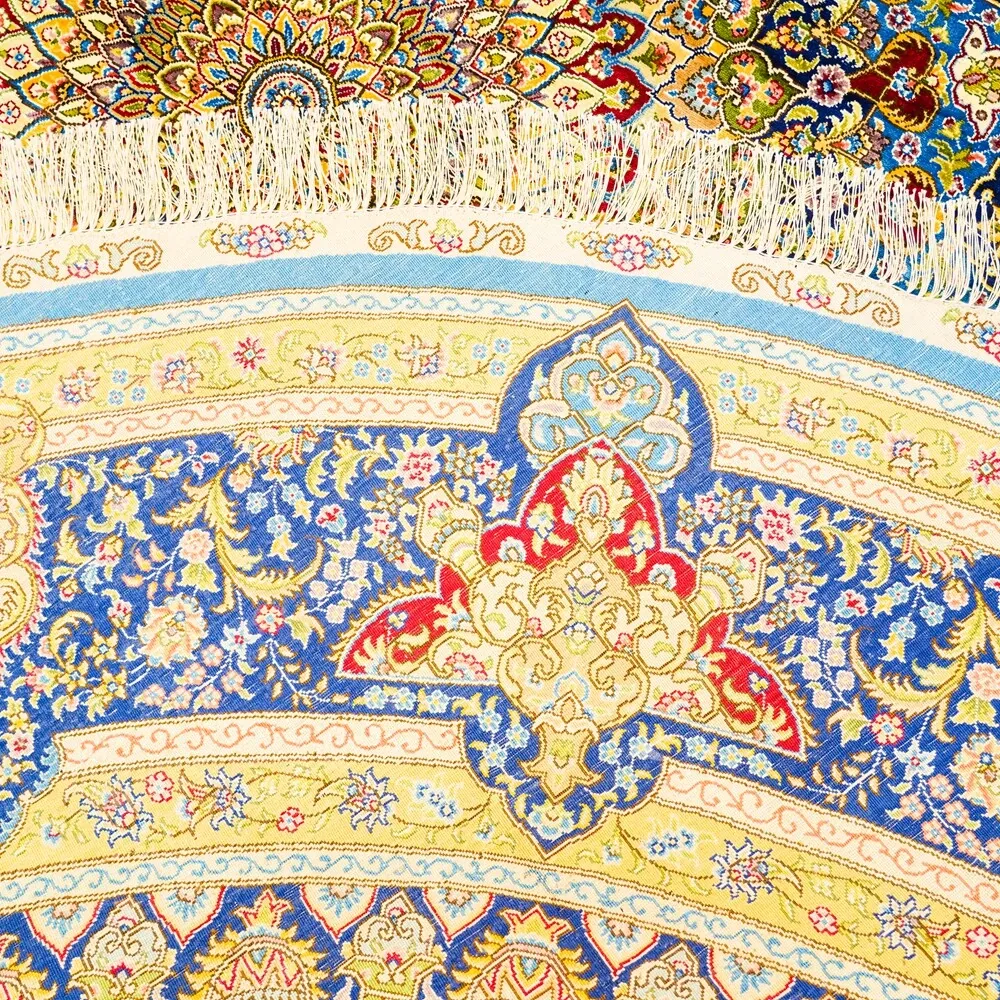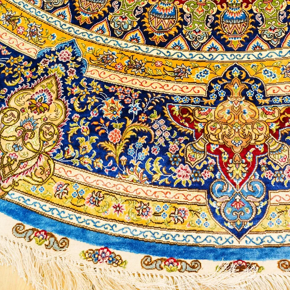 天匠の手作りシルクラグ - ヴィラのリビングや寝室にぴったりな240x240cmの円形ペルシャ絨毯。高級感あふれるデザインで、居心地の良い空間を演出します。