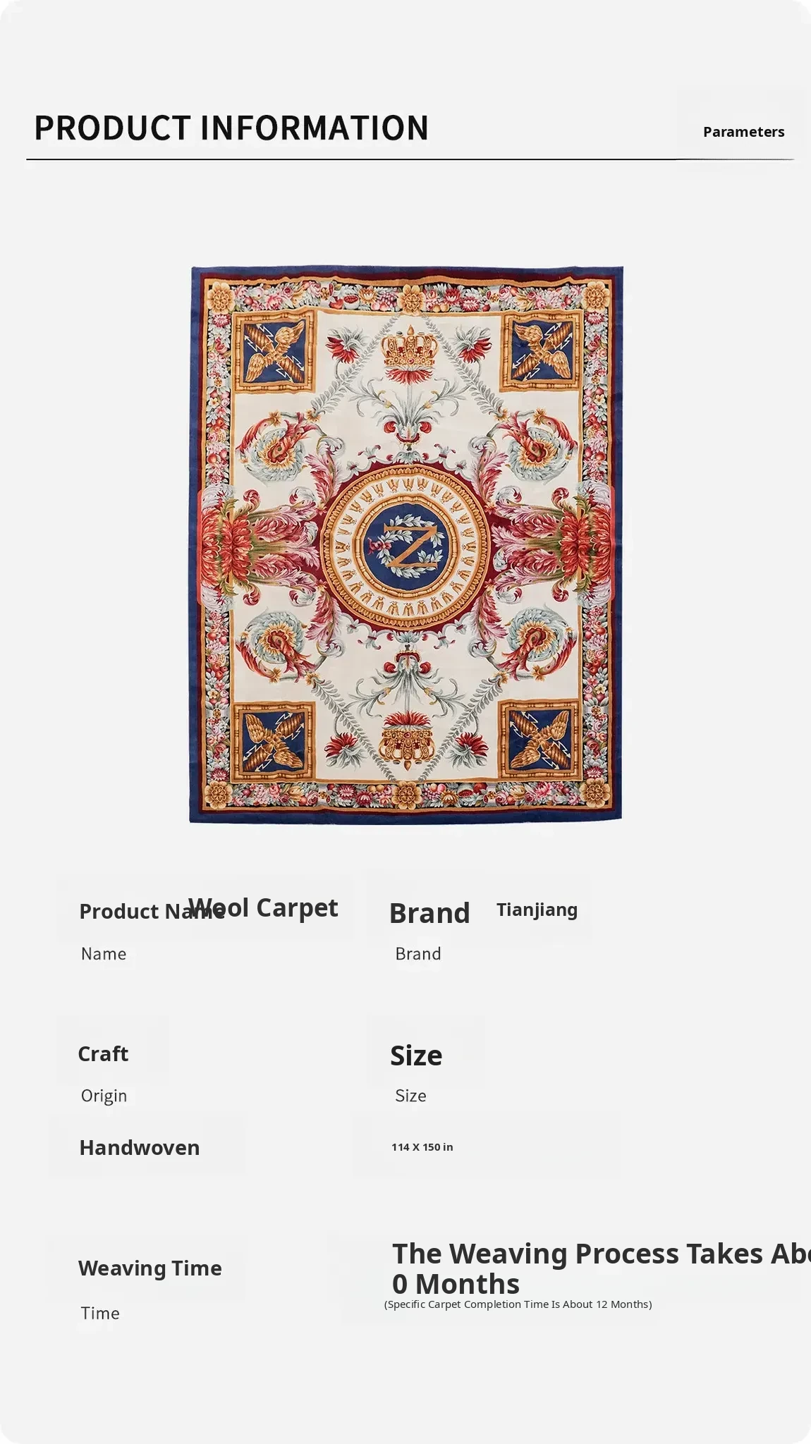 Artisan Imported Handmade Wool Carpet - European Style Living Room & Bedroom Rug, Formaldehyde-Free, 294x379cm