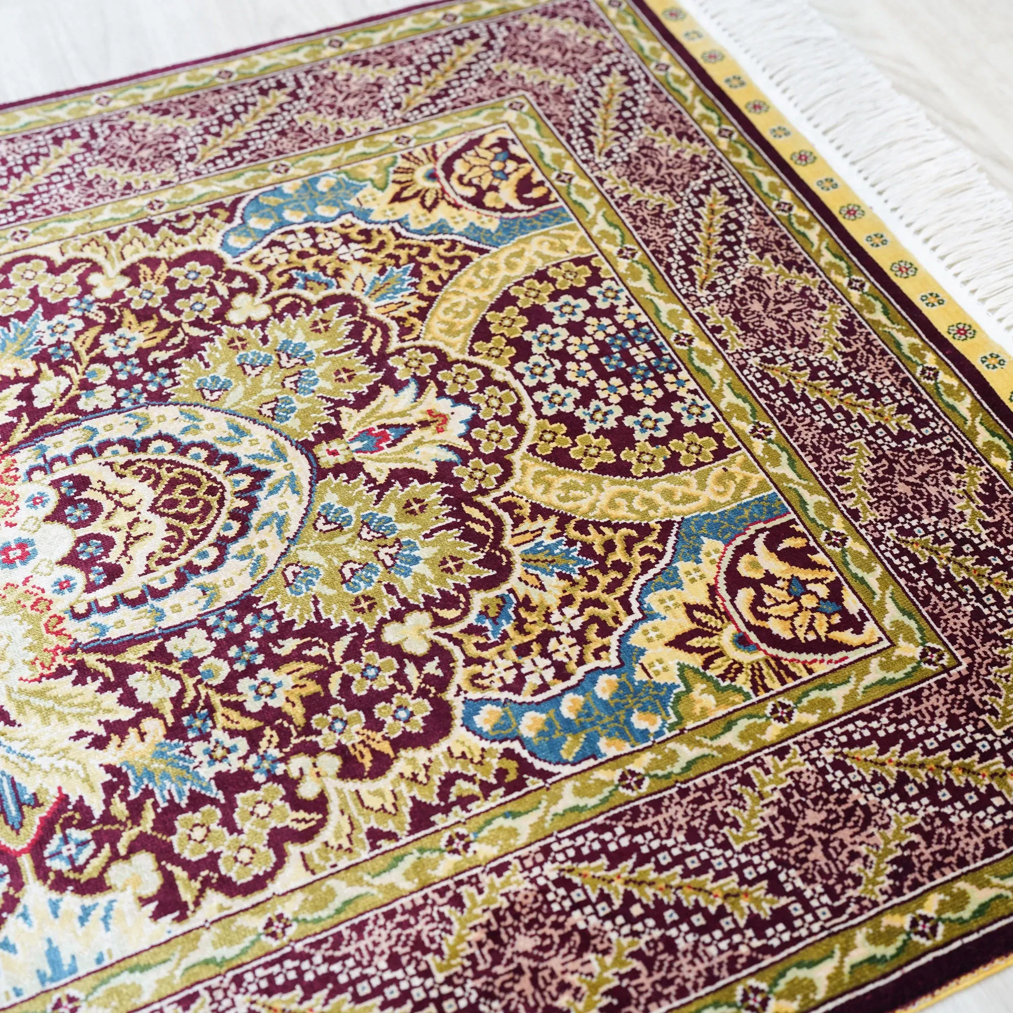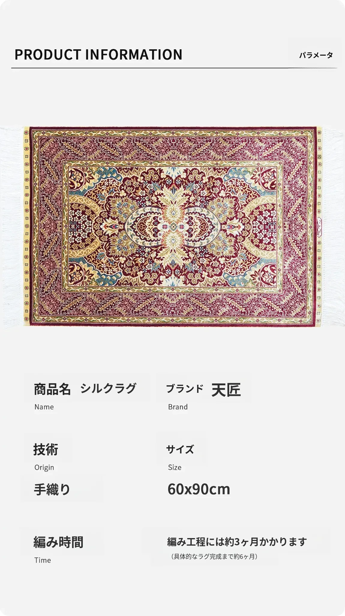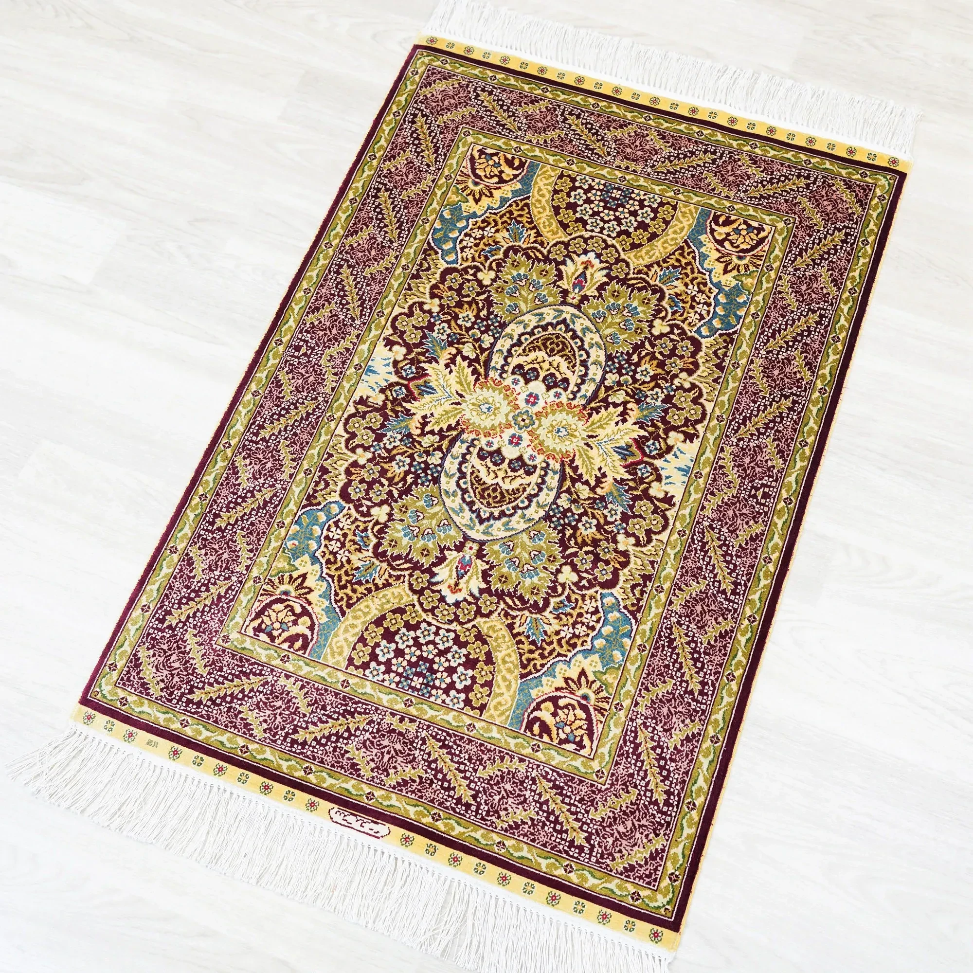 天匠手作のペルシャ絹織りラグ - 高級感溢れる手織りタペストリー、居心地の良い空間を演出する60x90cmのサイズ!